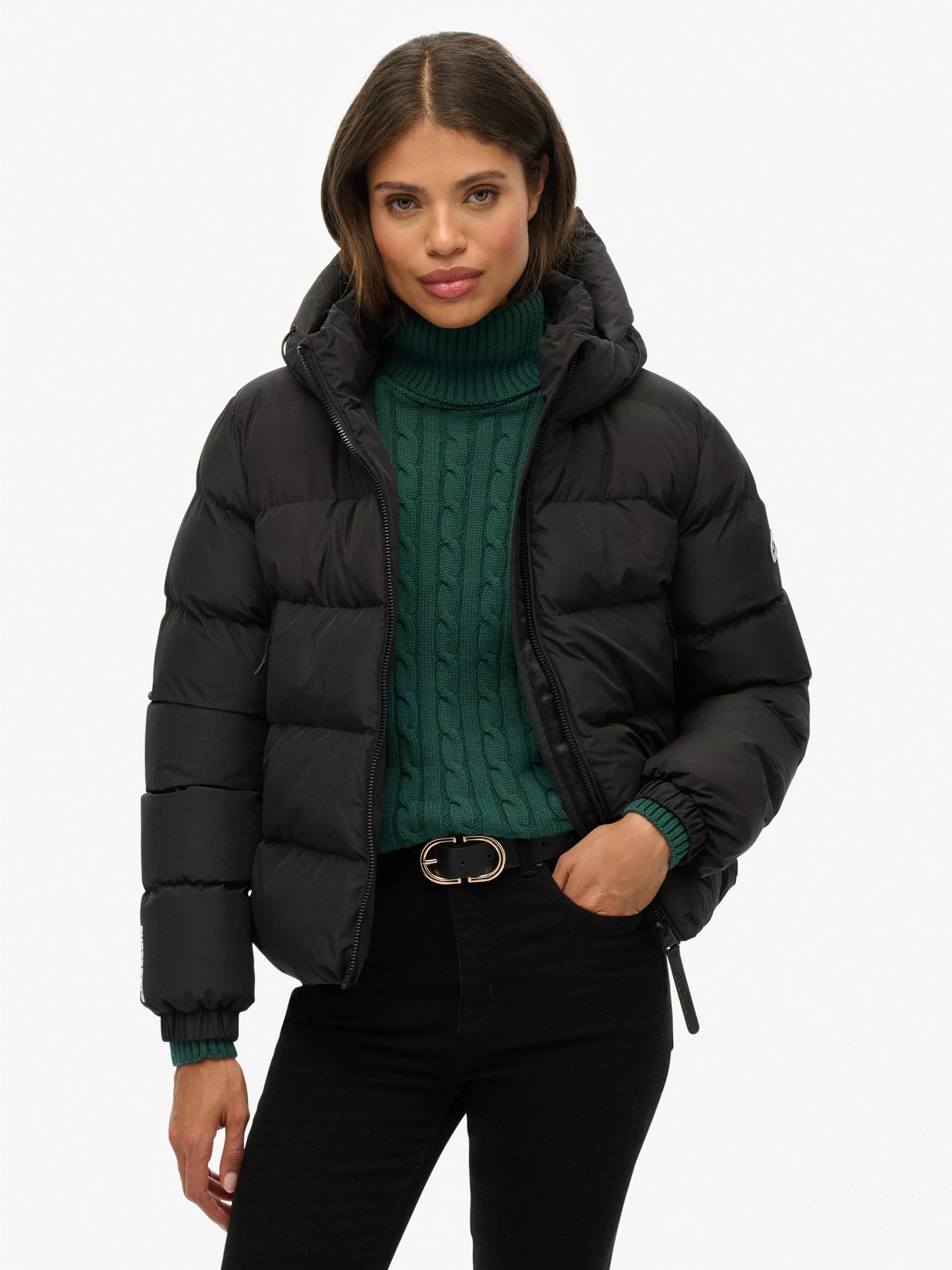 Adaptability, practicality and leading-edge design. This jacket will no doubt keep you warm and fashionable wherever you go. The Hooded Sports Puffer Jacket is the perfect outer layer to accompany your distinctive looks throughout the season. Whether you're braving the winter weather on or off the training field, this jacket is a timeless option that'll elevate your sleek, sporty aesthetic instantly.