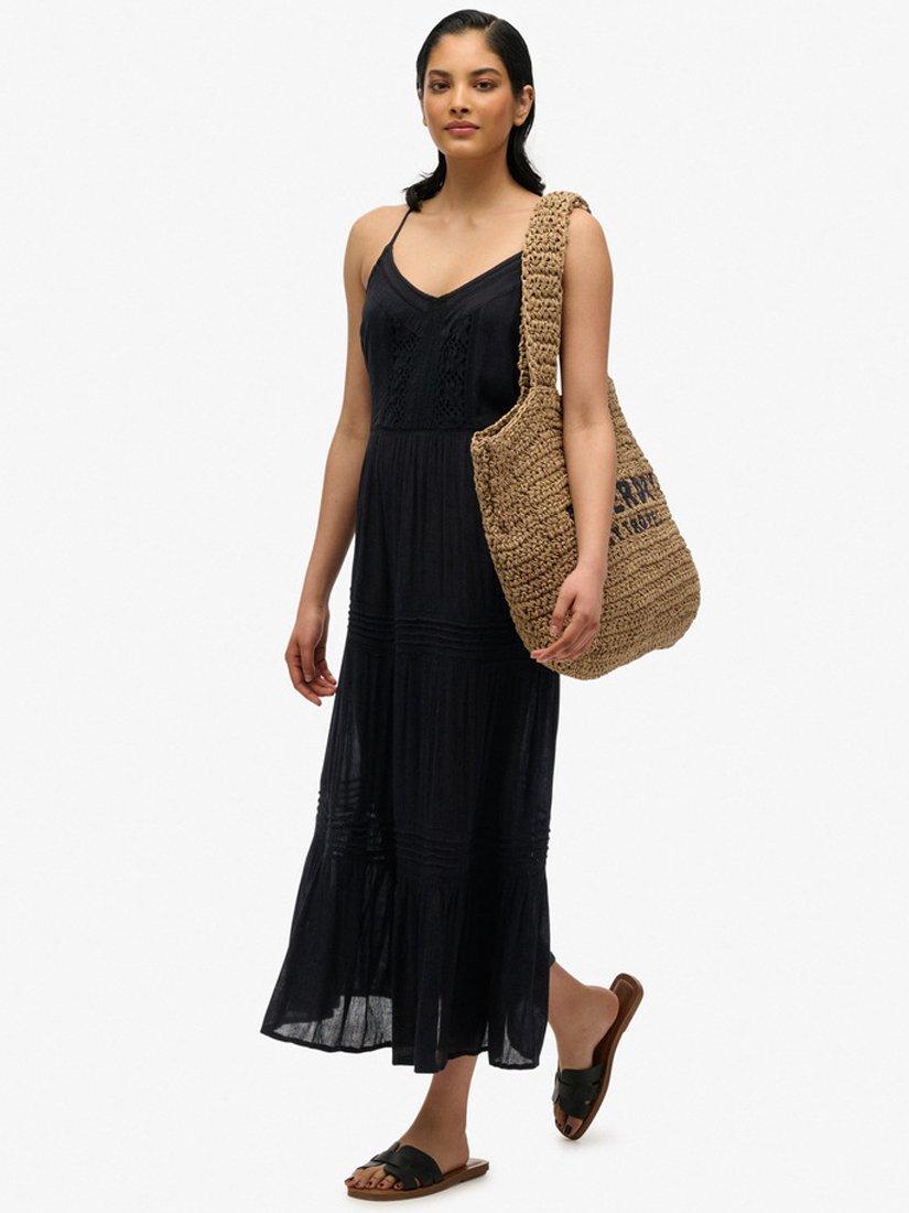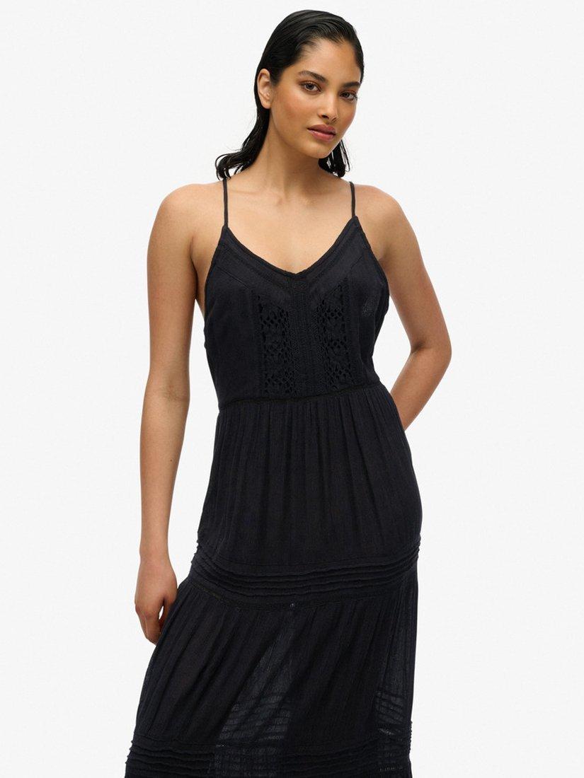 The Ibiza Cami Maxi Dress is here to stay. Carefully crafted with delicate lace detailing throughout the dress and finished with a tiered skirt, it's been designed to create stunning, elegant movement as you walk. Style it with a pair of sandals for an effortless, trendy outfit.