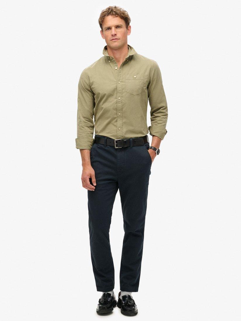 Some things are just meant to go together. Warmer days and a pair of chinos are just one of those things. The classic chino twill fabric combined with a laid-back style brings you a look that will help you to look and feel your best. Team with a vintage polo or linen shirt for that ultimate in off-duty smart. They have a button fastening with zip fly, two side pockets and two back button-down pockets, and are finished with the Superdry logo patch.