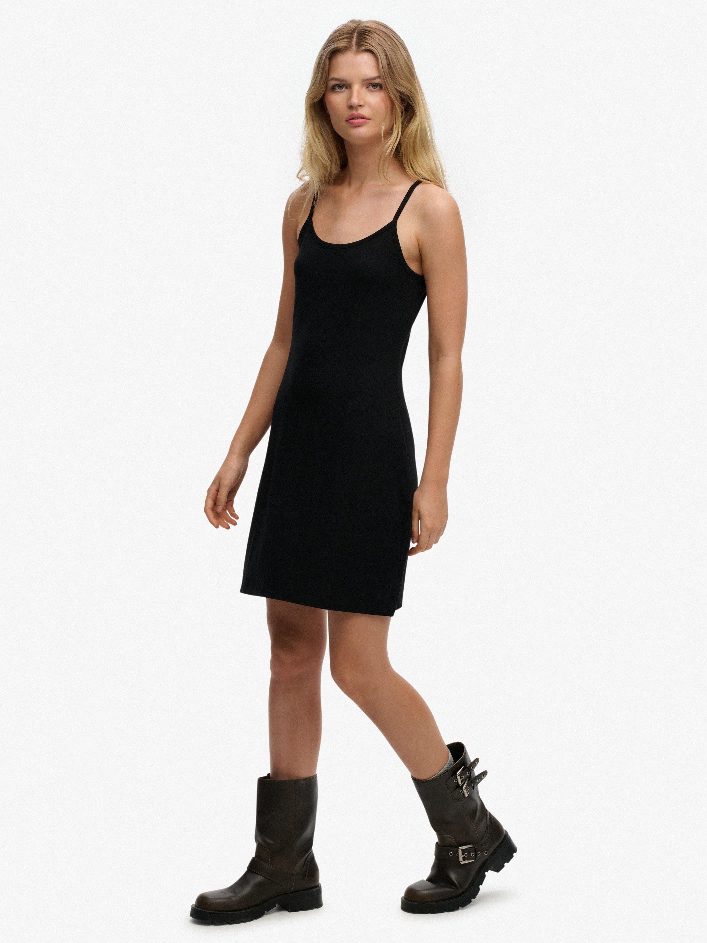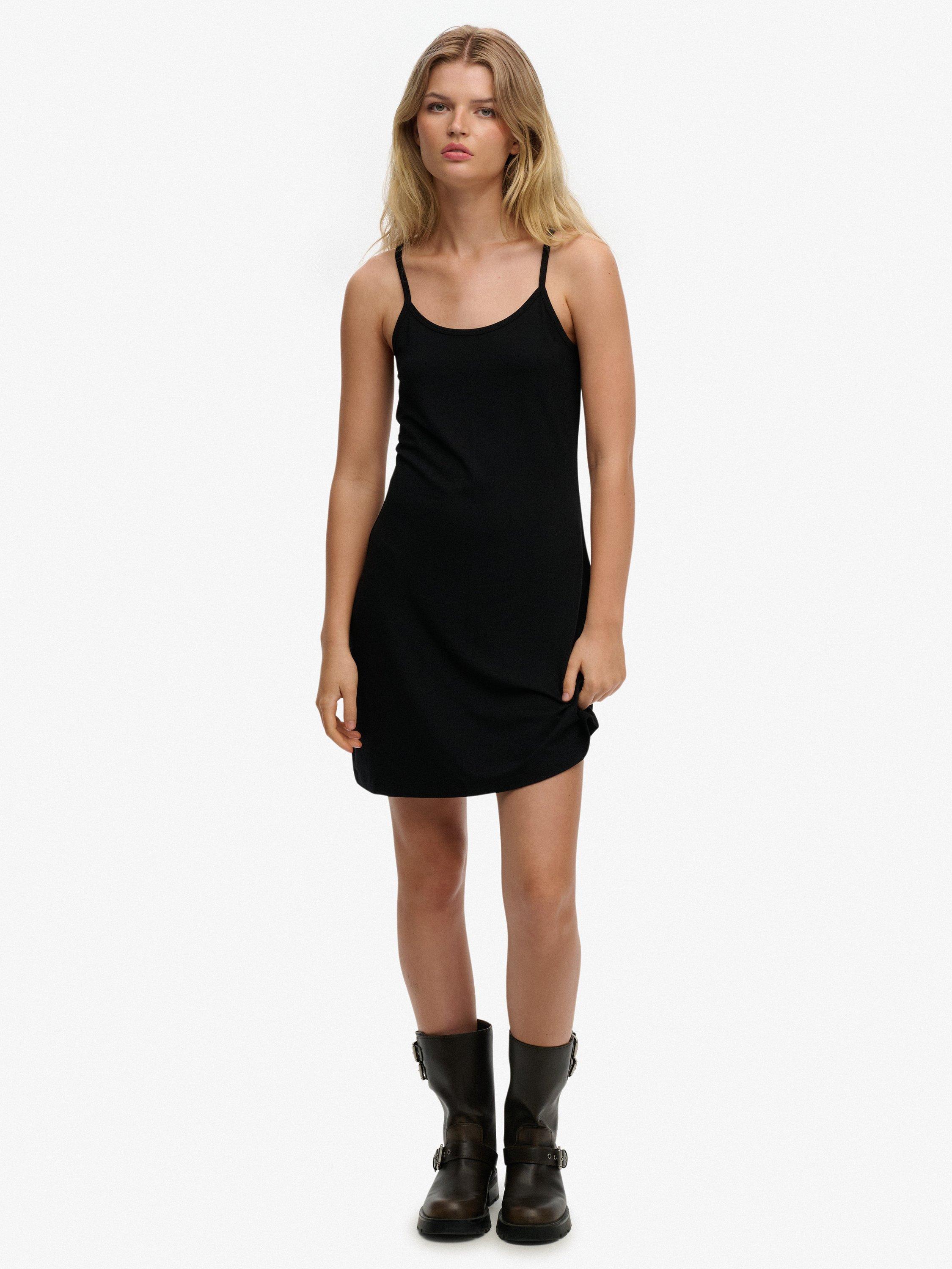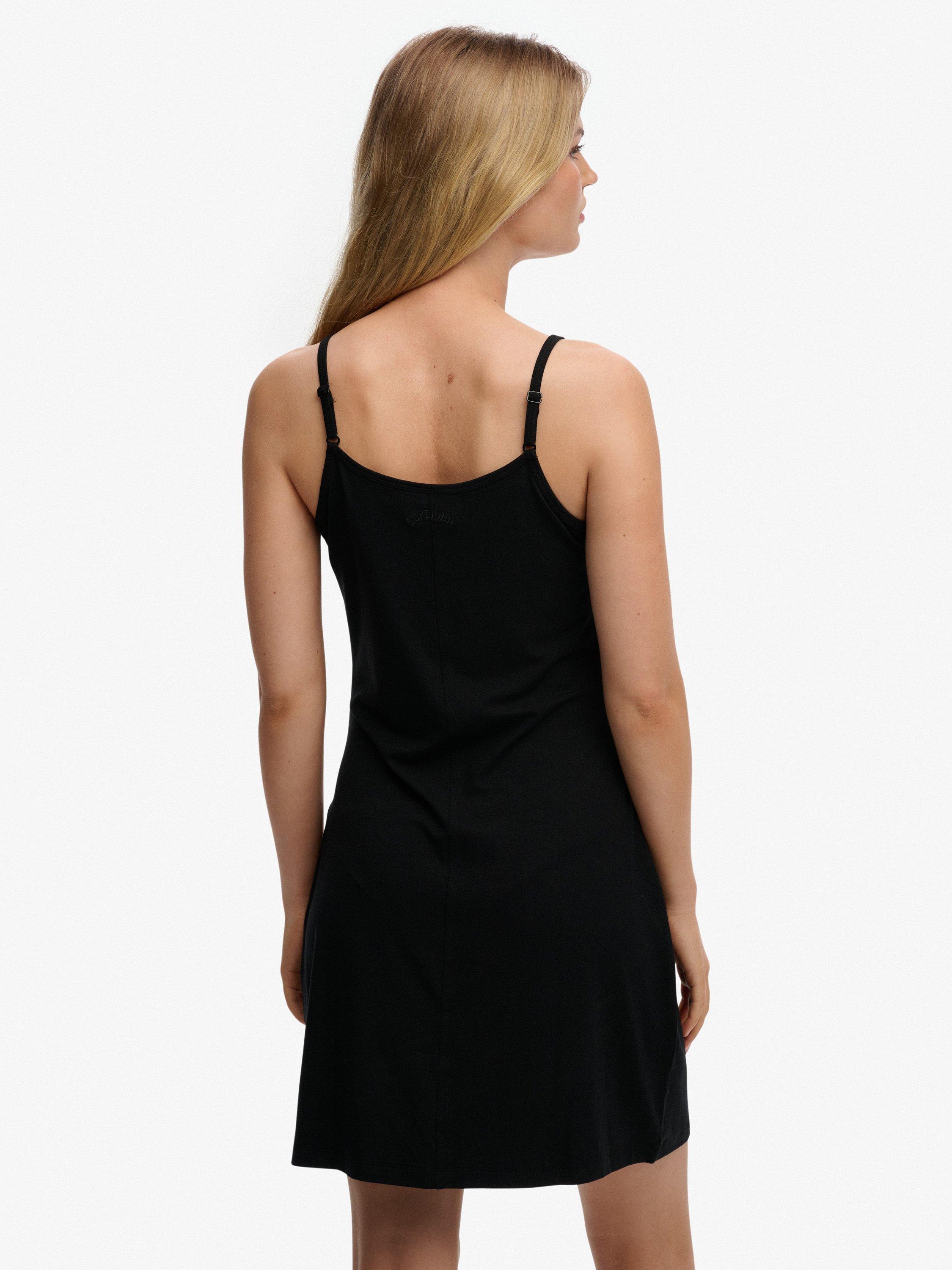 A pared-back addition to your wardrobe rotation. Curated with an emphasis on quality, the dress is cut in a slim fit for a more tailored look with adjustable spaghetti straps. Complete with embroidered text on the back neckline.