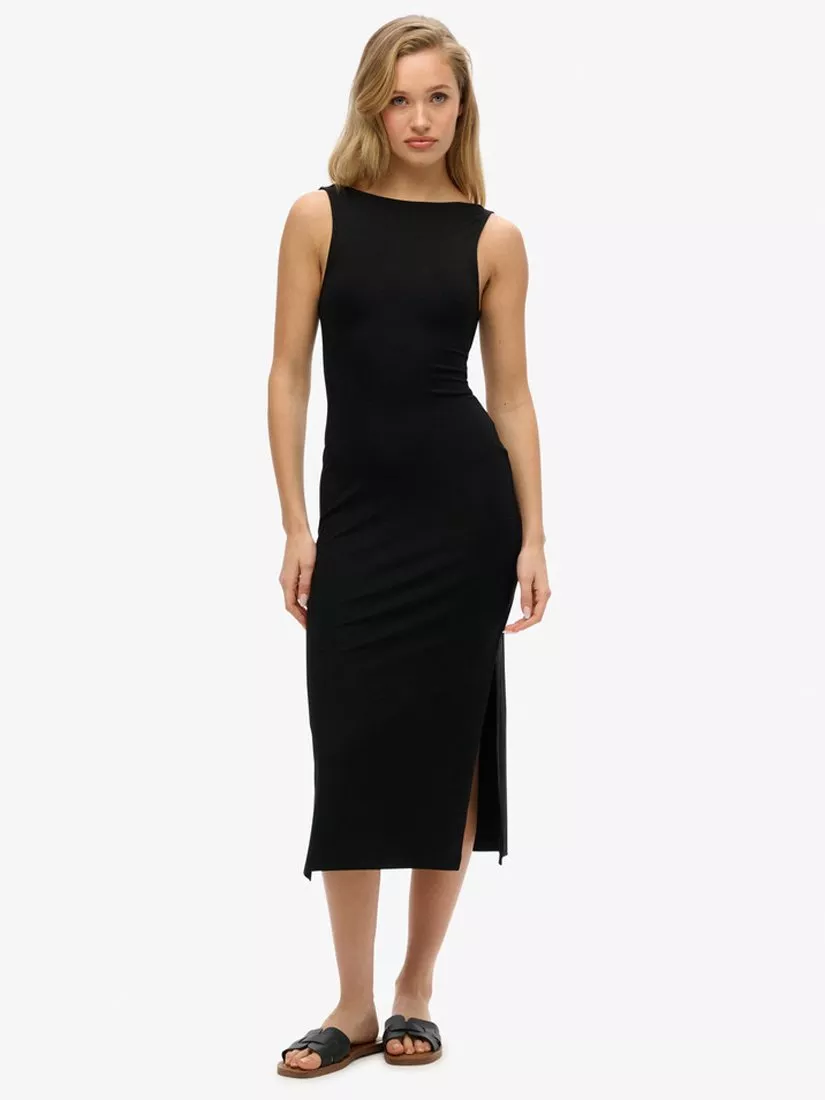 Designed in a simple but effective straight shape, this mid-length dress from Superdry is crafted from a blend of fabrics. Defined with a conventional round neckline, this sleeveless style is minimally detailed for endless wearability.