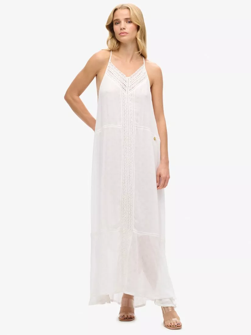 Flattering in all the right places, this maxi dress from Superdry is made from a whisper-weight viscose blend. With a universally flattering v-neckline, this style is kept minimal for a truly seasonal collection.