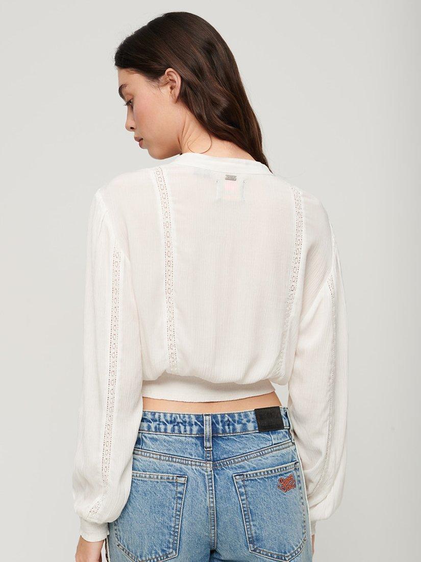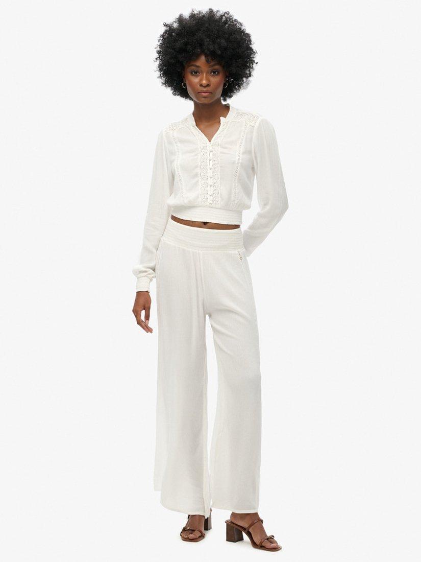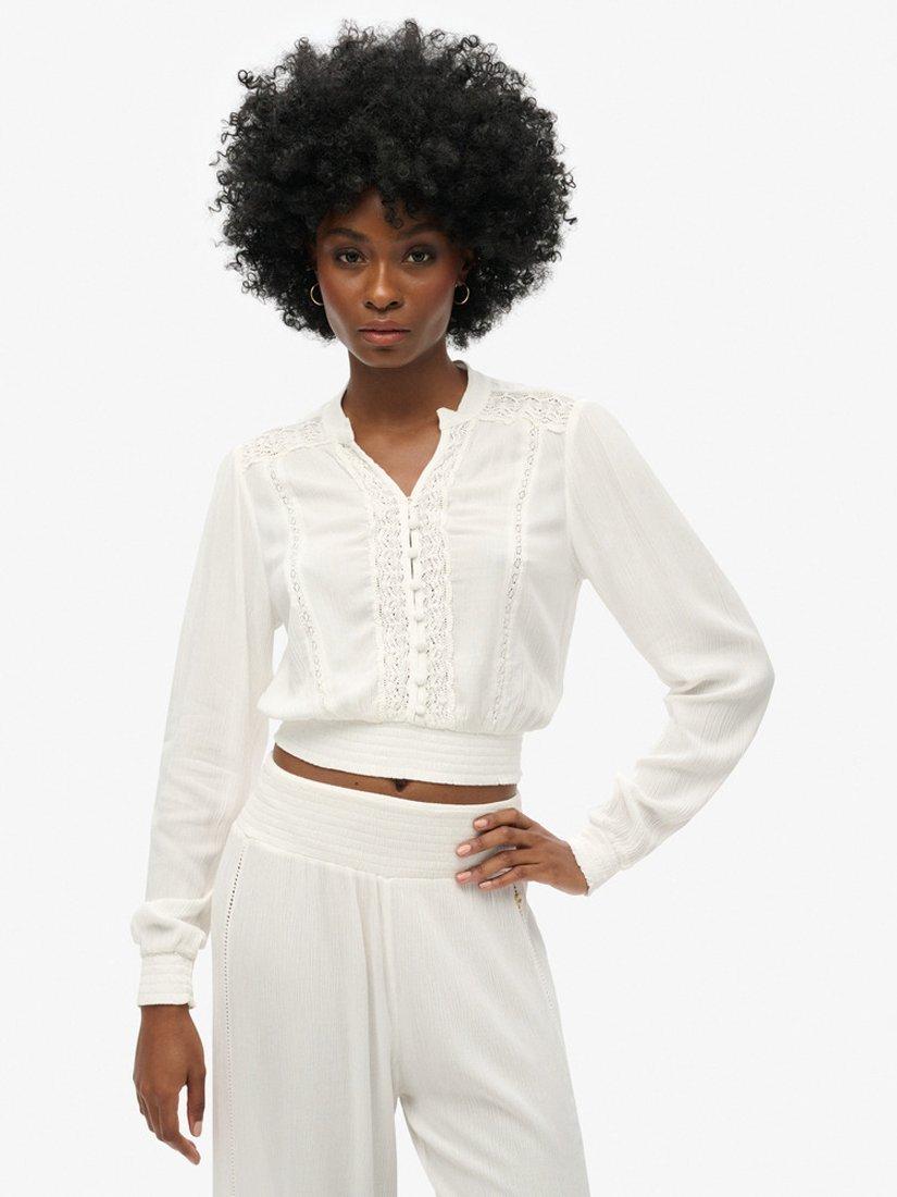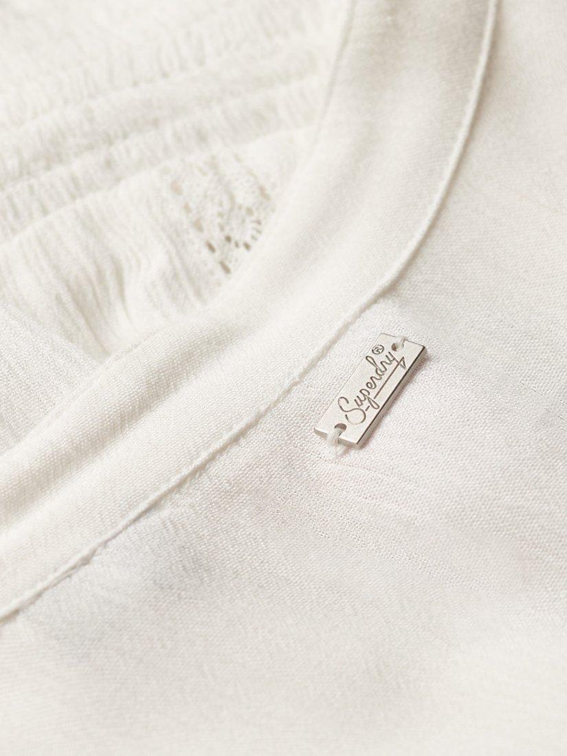 SuperdryLace Trim Smock Top, Ecru