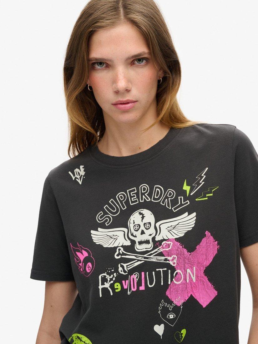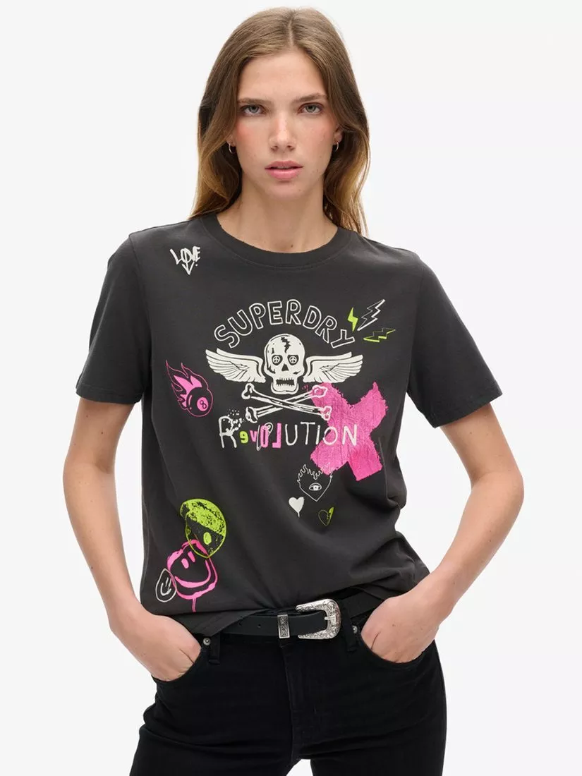 Head back to the heyday of punk in the Lo-Fi Punk Poster Relaxed T-Shirt with a graphic inspired by those rebellious days. The edgy print embellished with rhinestone studs will really give your outfit a bite.
