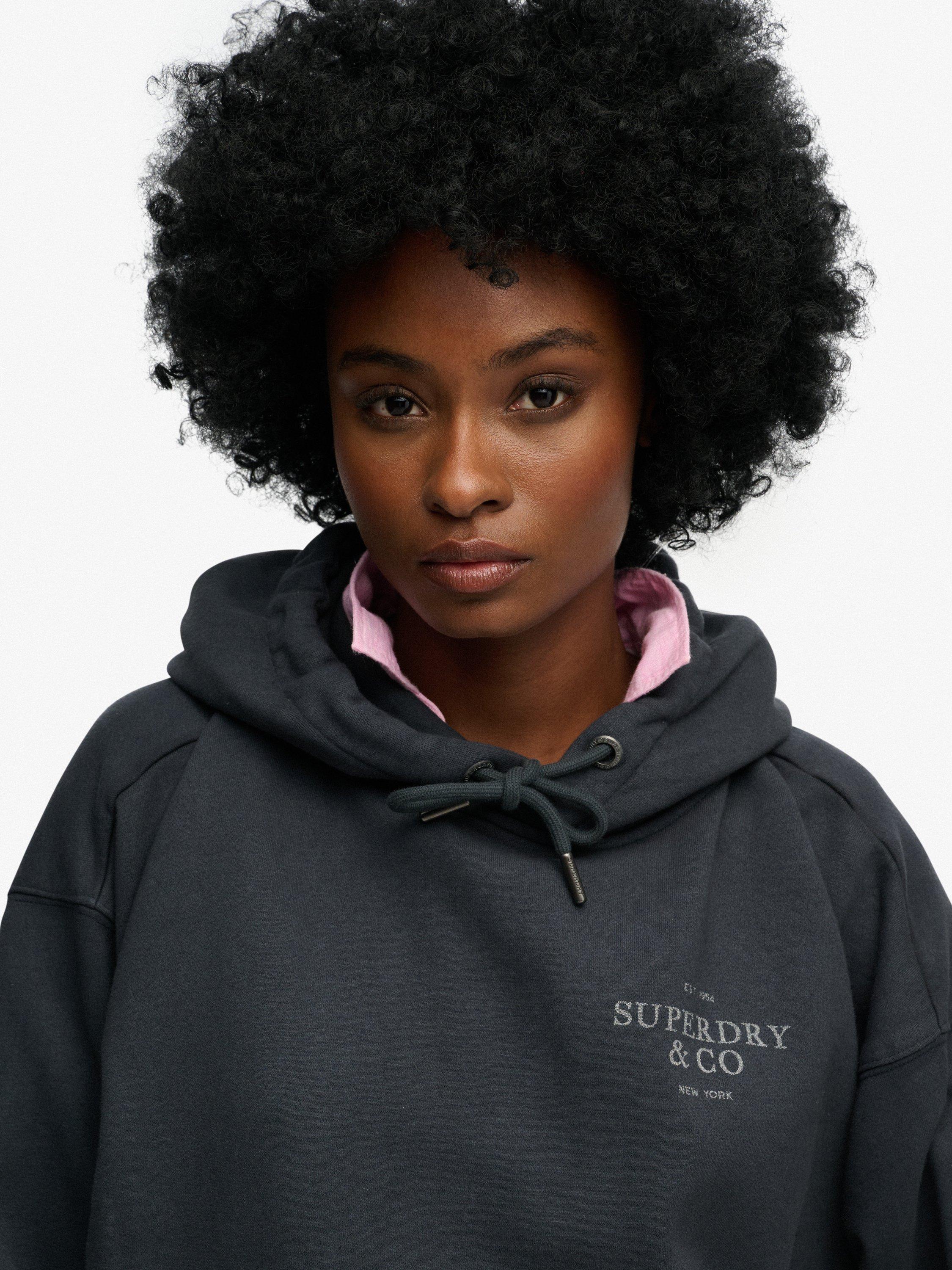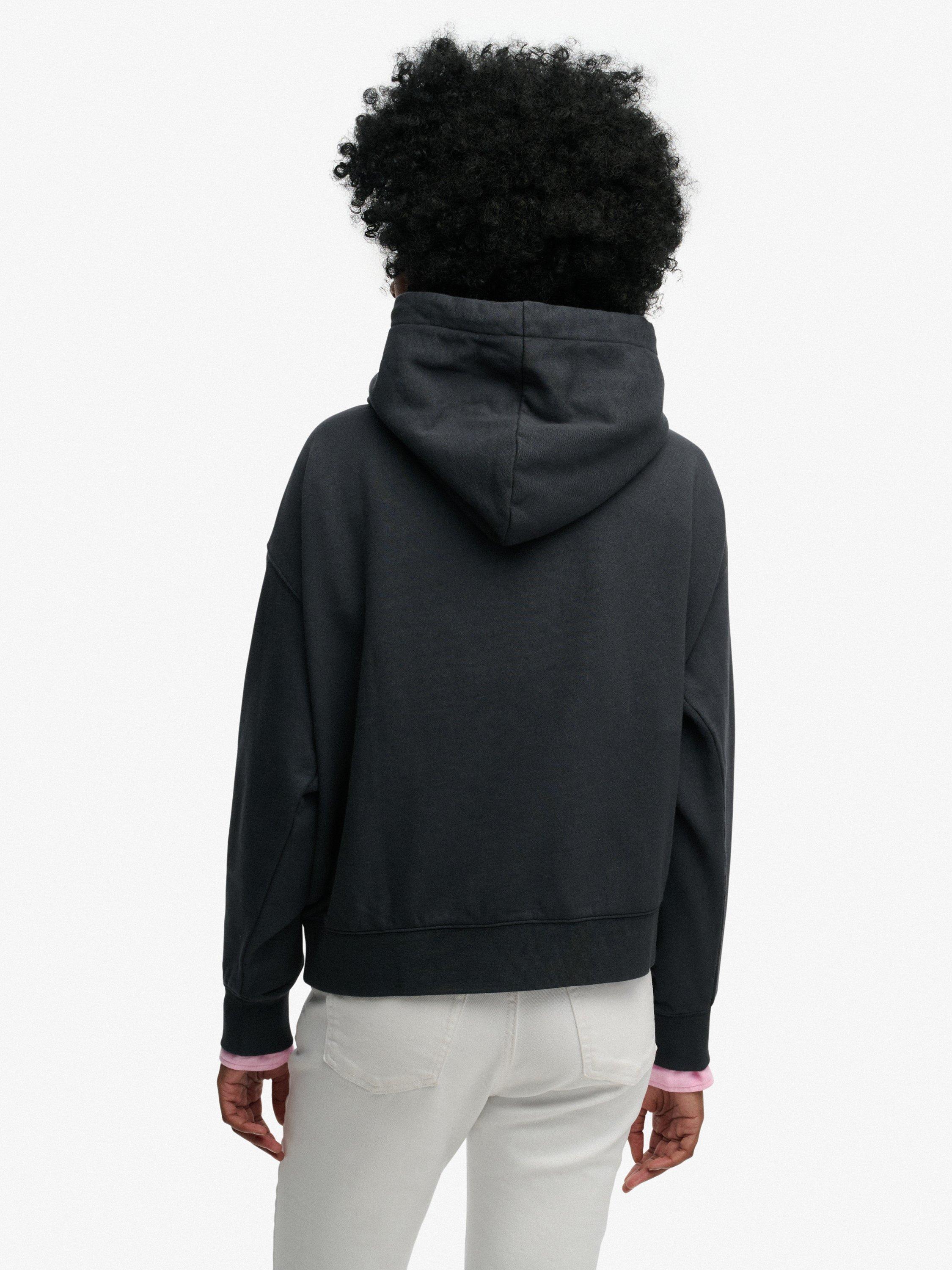 Add a subtle chic feel to your wardrobe rotation this season with the Luxe Casual Relaxed Hoodie. Curated with dropped sleeves and an oversized fit, Superdry have made the silhouette effortless, whilst the brushed lining is sumptuously soft, making it the perfect option.