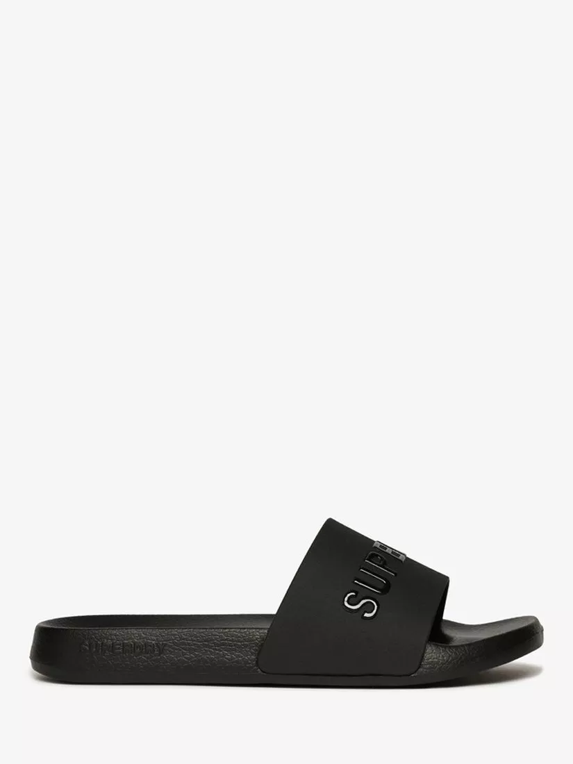 SuperdryLuxe Logo Pool Sliders, Black