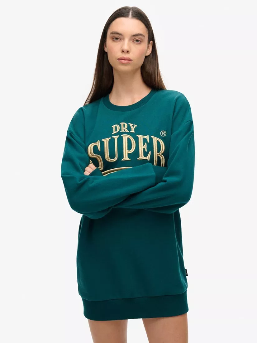 SuperdryLuxe Metallic Logo Sweat Dress, Deep Teal