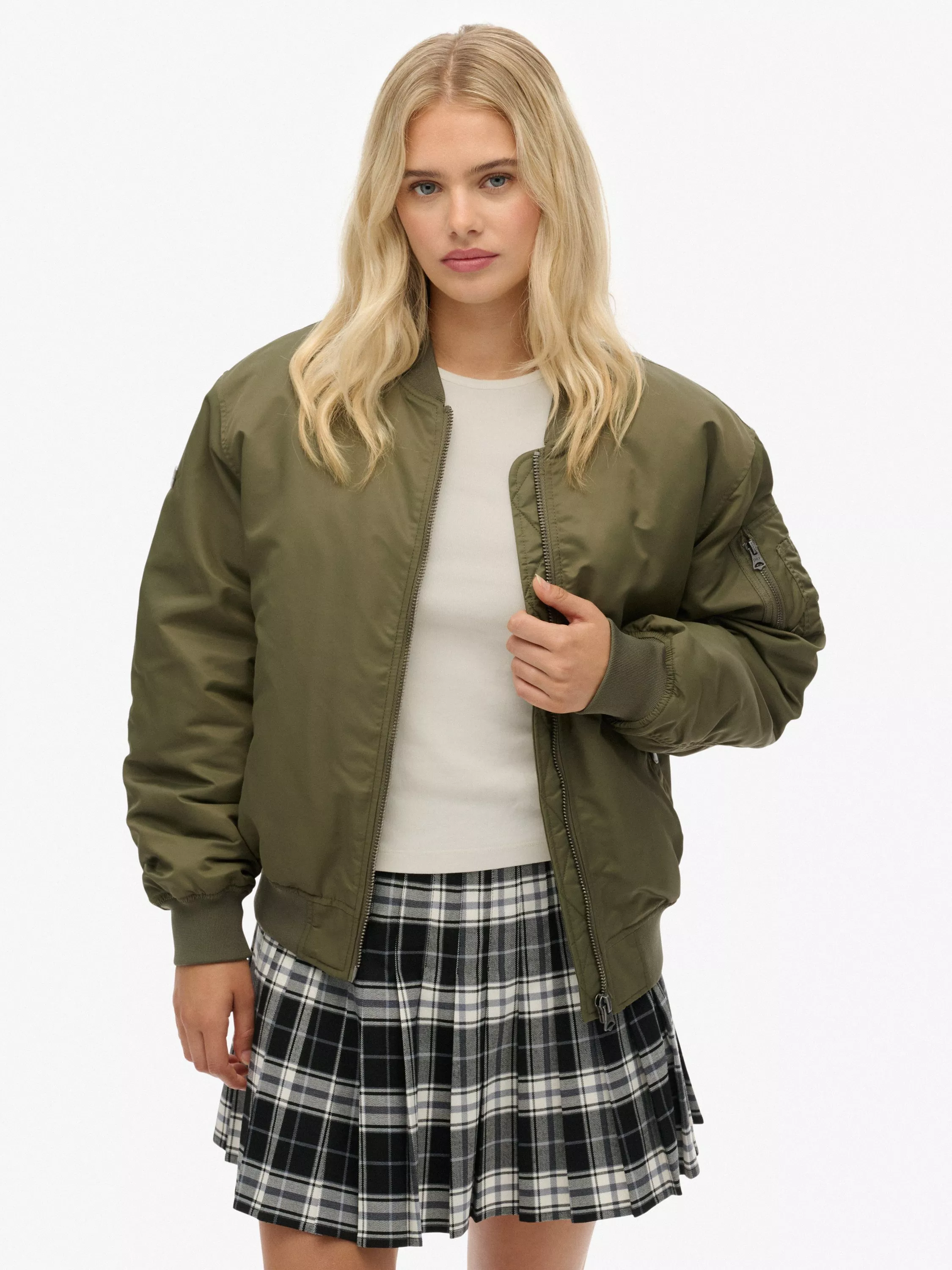 The MA1 Bomber Jacket is a classic design that Superdry have elevated perfectly for your signature style. Curated with a signature metal badge on the sleeve, a boxy fit, and hardware-branded poppers, Superdry have made it effortless for you to add an edgy vibe to your outfits with premium comfort and style.