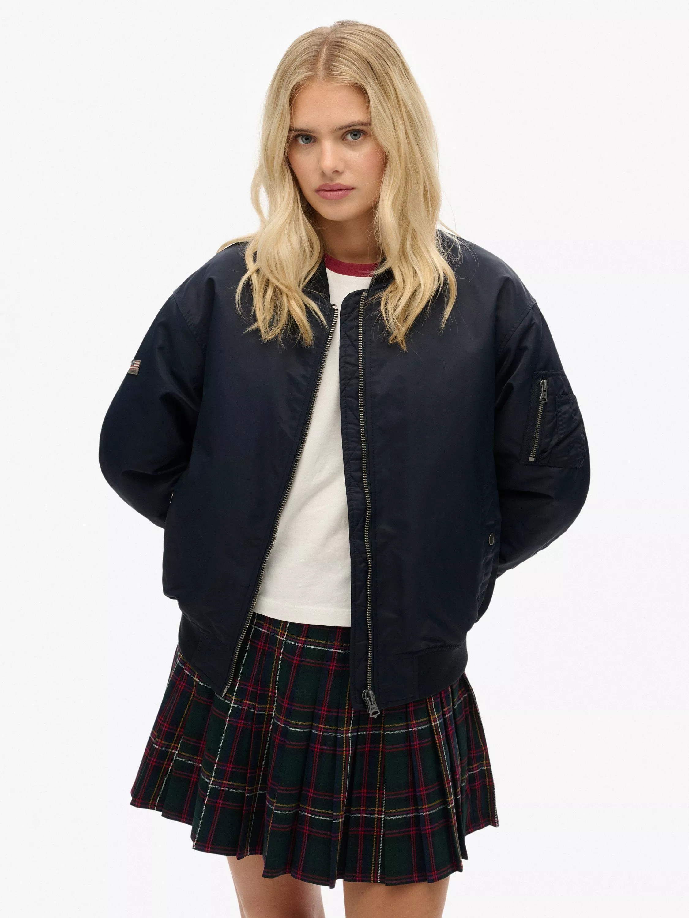 The MA1 Bomber Jacket is a classic design that Superdry have elevated perfectly for your signature style. Curated with a signature metal badge on the sleeve, a boxy fit, and hardware-branded poppers, Superdry have made it effortless for you to add an edgy vibe to your outfits with premium comfort and style.