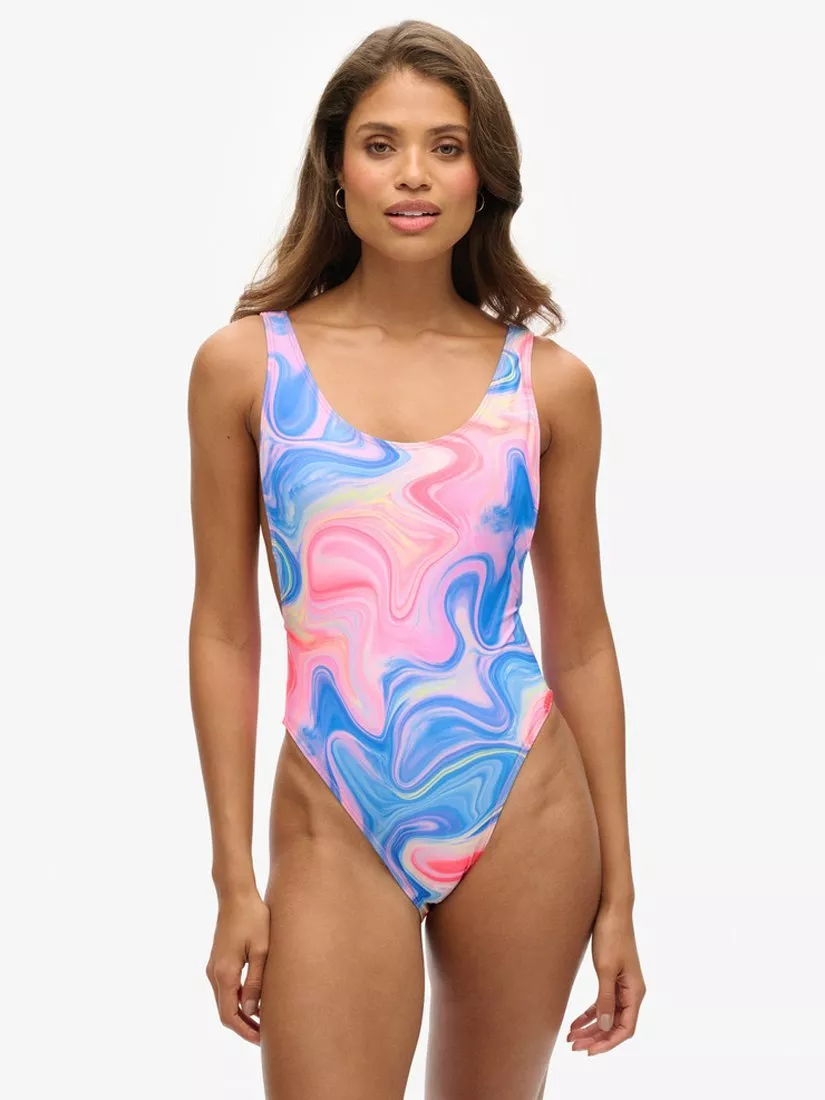 Catching the eye with an intruiging marble pattern Superdry boasts a scoop neckline, removable padding and is finished with a scooped back.
