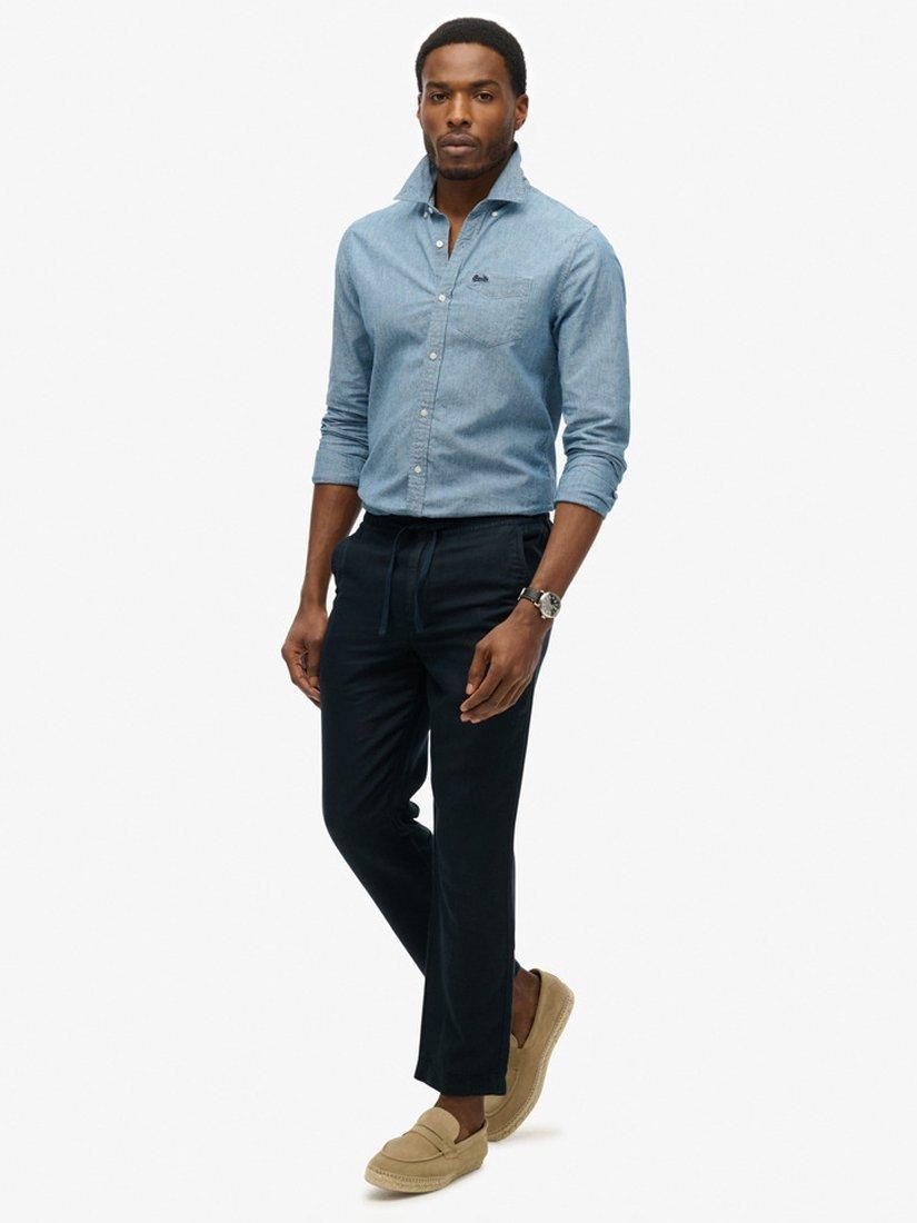 SuperdryMerchant Linen Trousers, Eclipse Navy