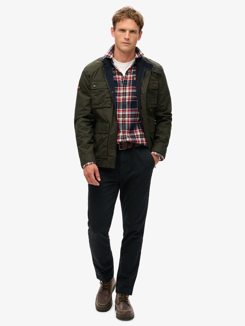 This waxed jacket exudes modern elegance with a heritage feel. Cut to a relaxed fit, it's a great option for autumnal weather, offering a smart extra layer with design details including corduroy trims and a check pattern lining. There are four outer pockets, adjustable button cuffs for a comfortable fit and an embroidered patch on the sleeve.