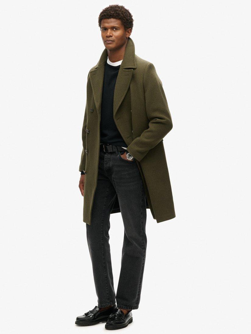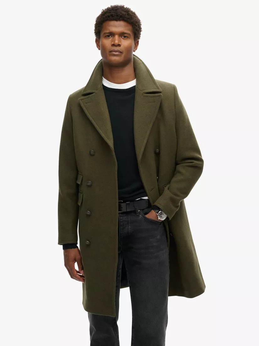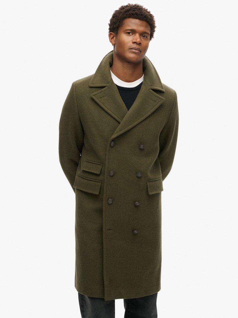 SuperdryMerchant Wool Long Coat, Olive Night Green