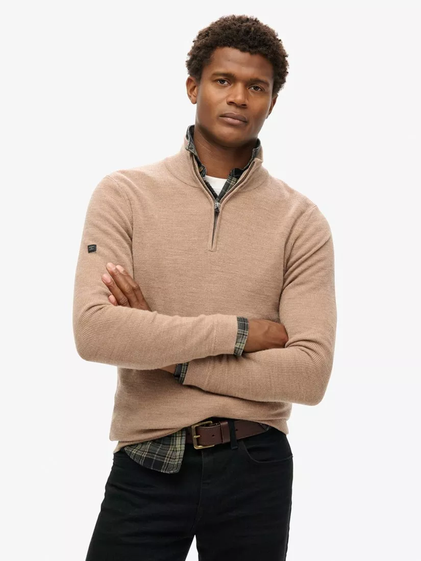 The core of any casual edit, this zipped jumper from Superdry is woven with a whisper of wool for lasting warmth and softness.