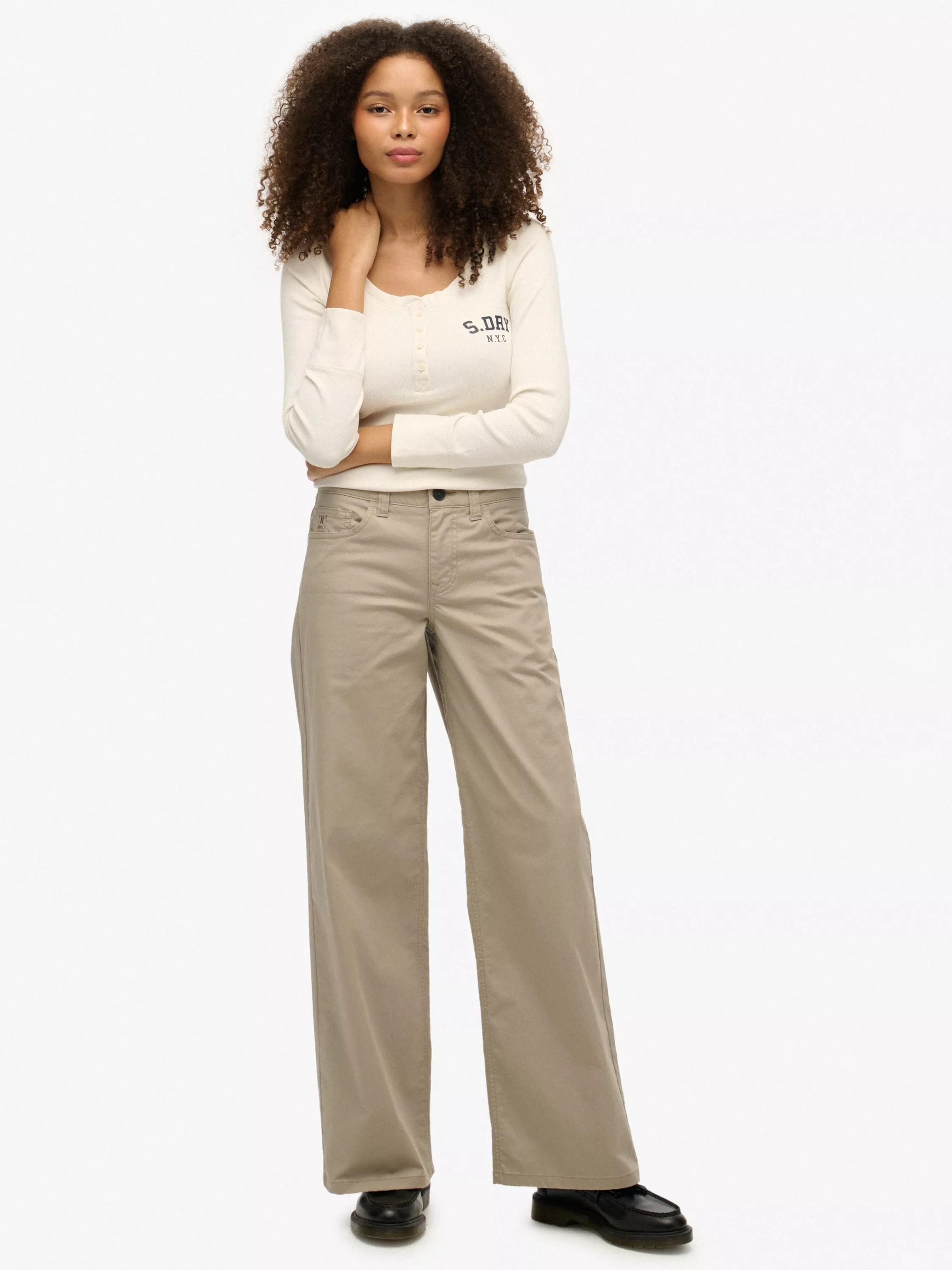 The perfect blend of contemporary and street style. The Mid Rise Baggy Chino has been expertly curated with a wide fit and sleek branding. This creates a flattering silhouette that's effortless to style for the new season.