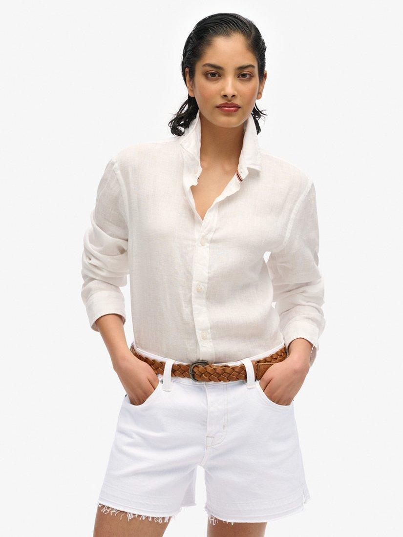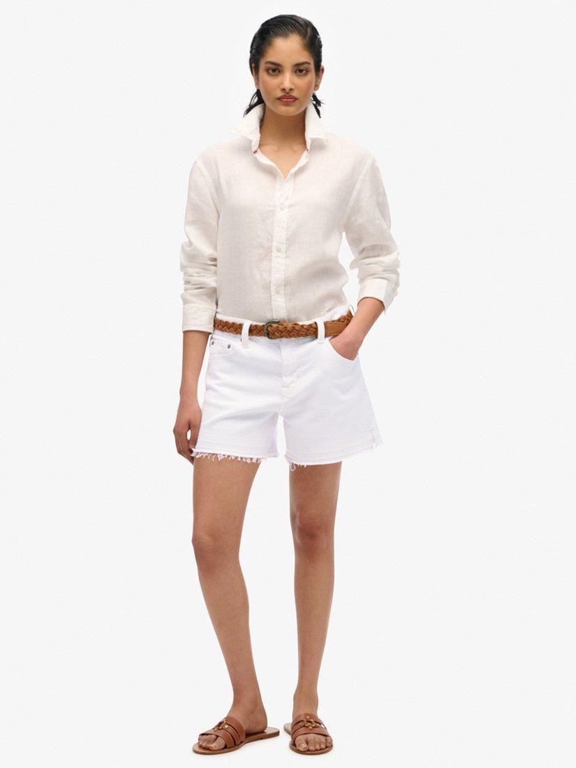 SuperdryMid Rise Denim Cut Off Shorts, Optic