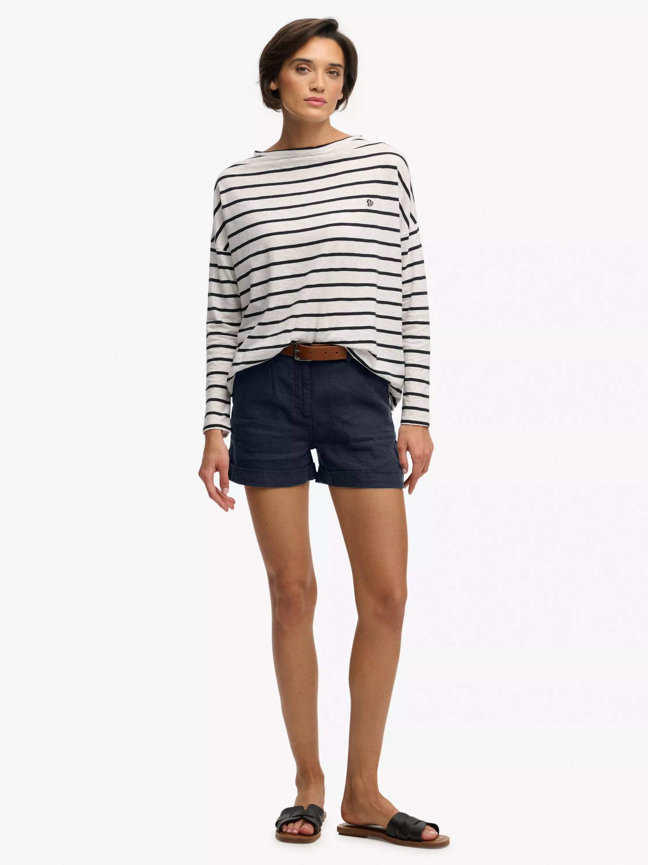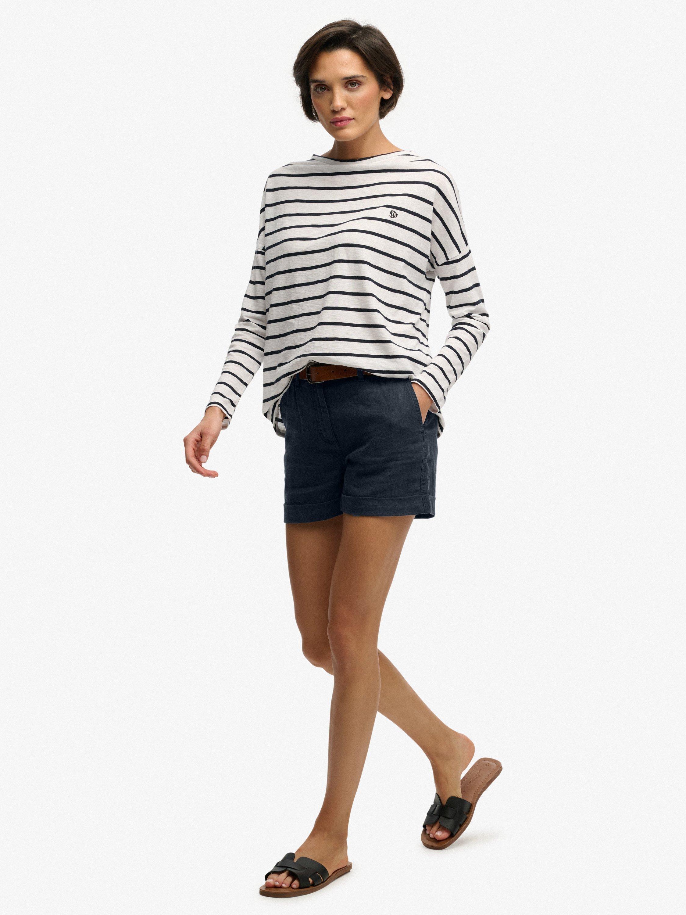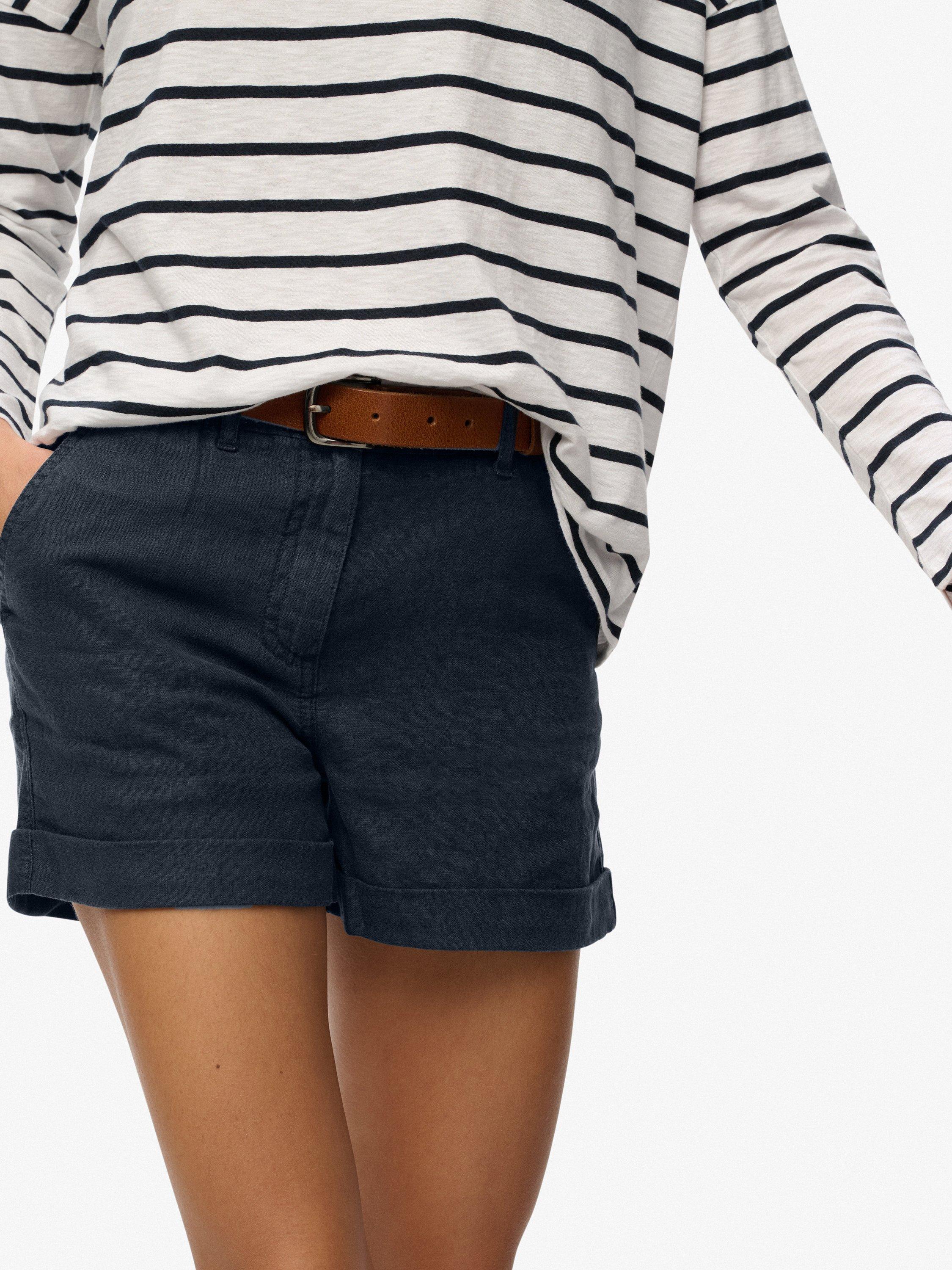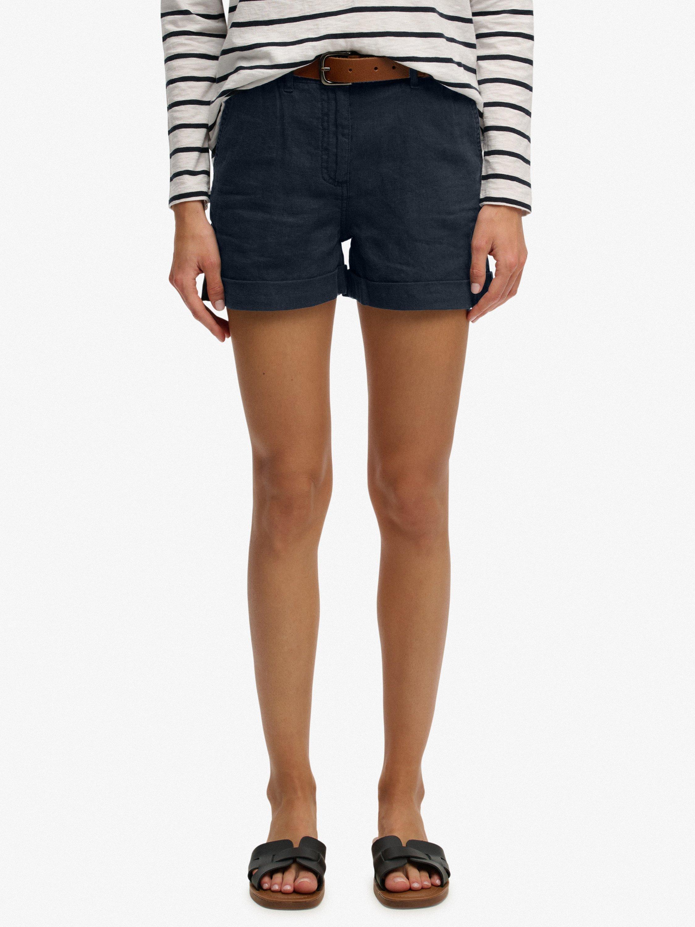 SuperdryMid Rise Linen Shorts, Eclipse Navy