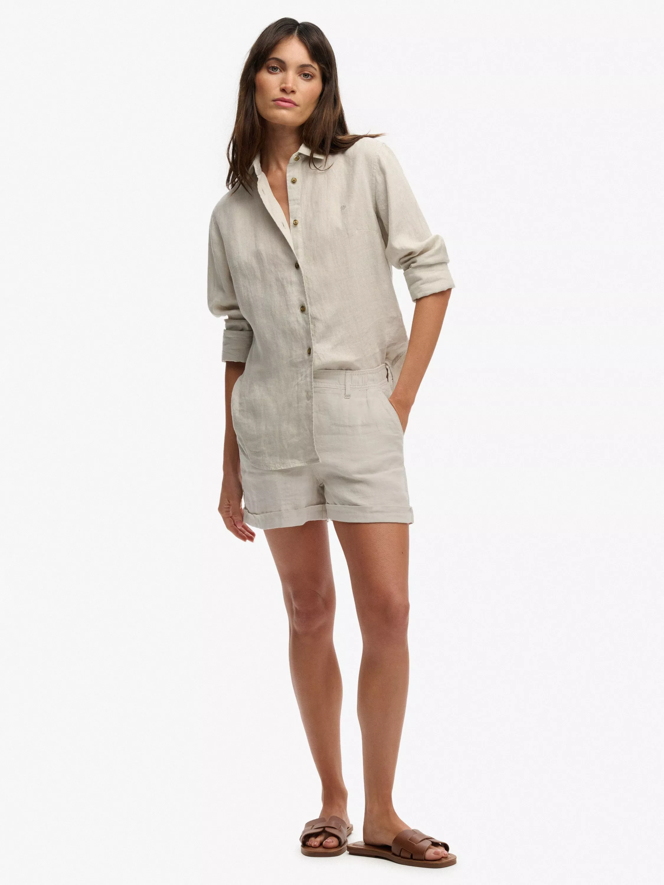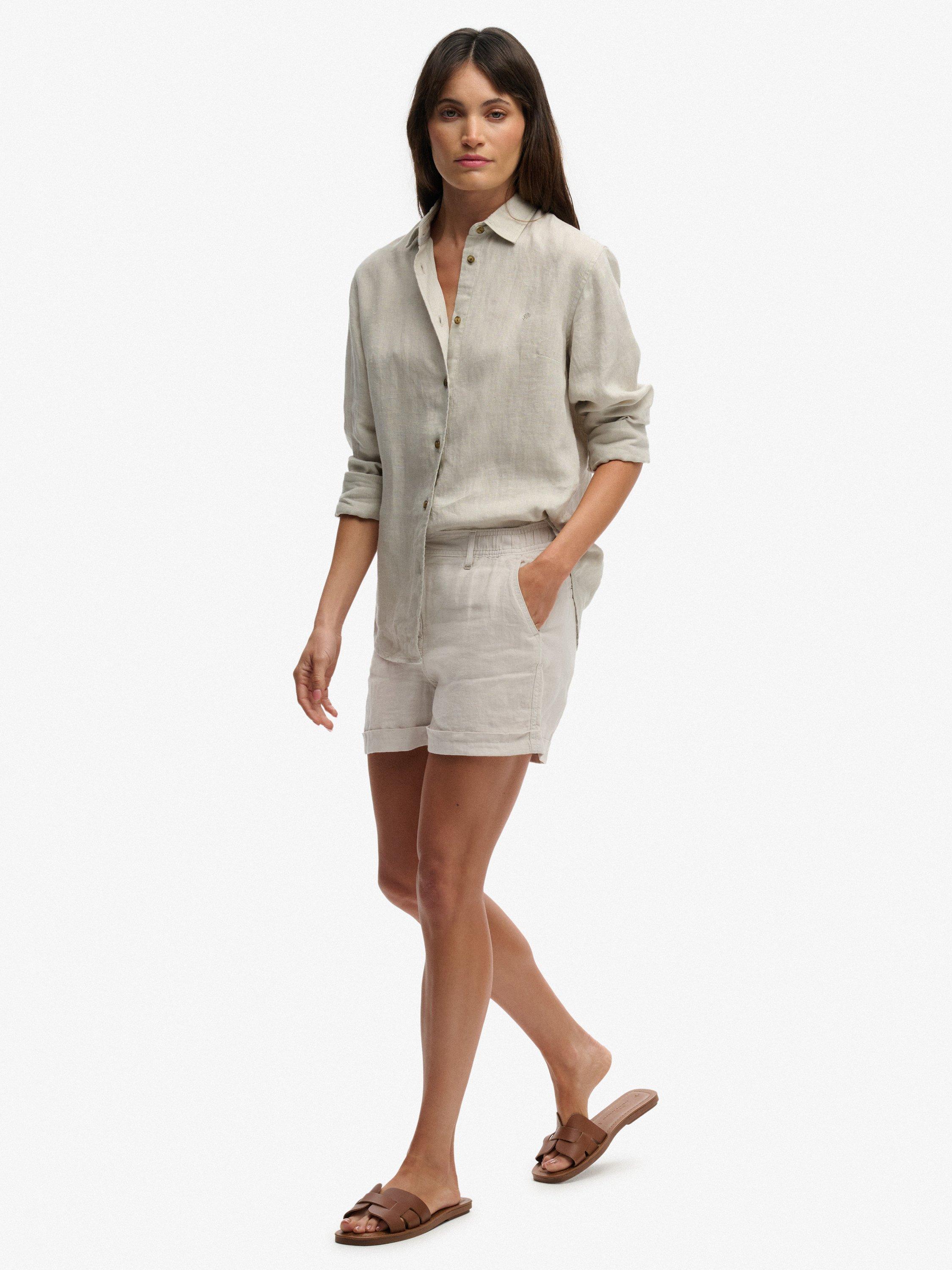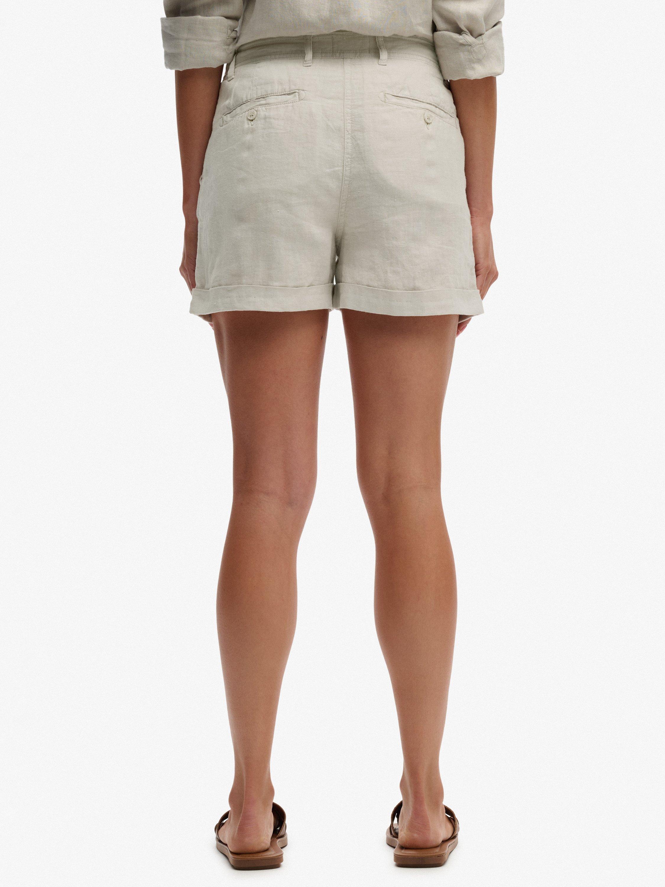 SuperdryMid Rise Linen Shorts, Light Stone Beige
