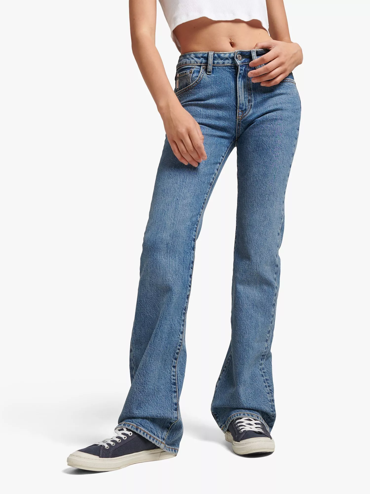 Inspired by flared silhouettes of the 70s, these mid rise jeans by Superdry are made from an organic cotton denim.
