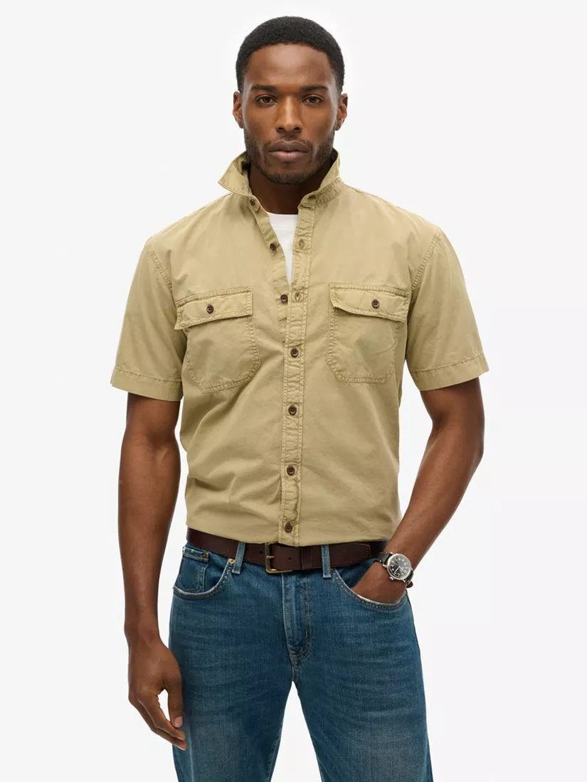 SuperdryMilitary Organic Cotton Short Sleeve Shirt, Canyon Sand Brown, L