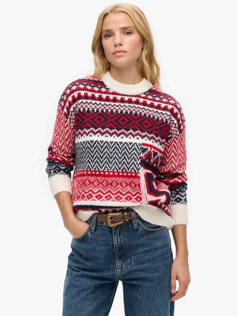 Shaped at the neck by a classic crew framing, this jumper by Superdry puts a fresh spin on things in an abstract design and is prepped to keep the cold at bay.