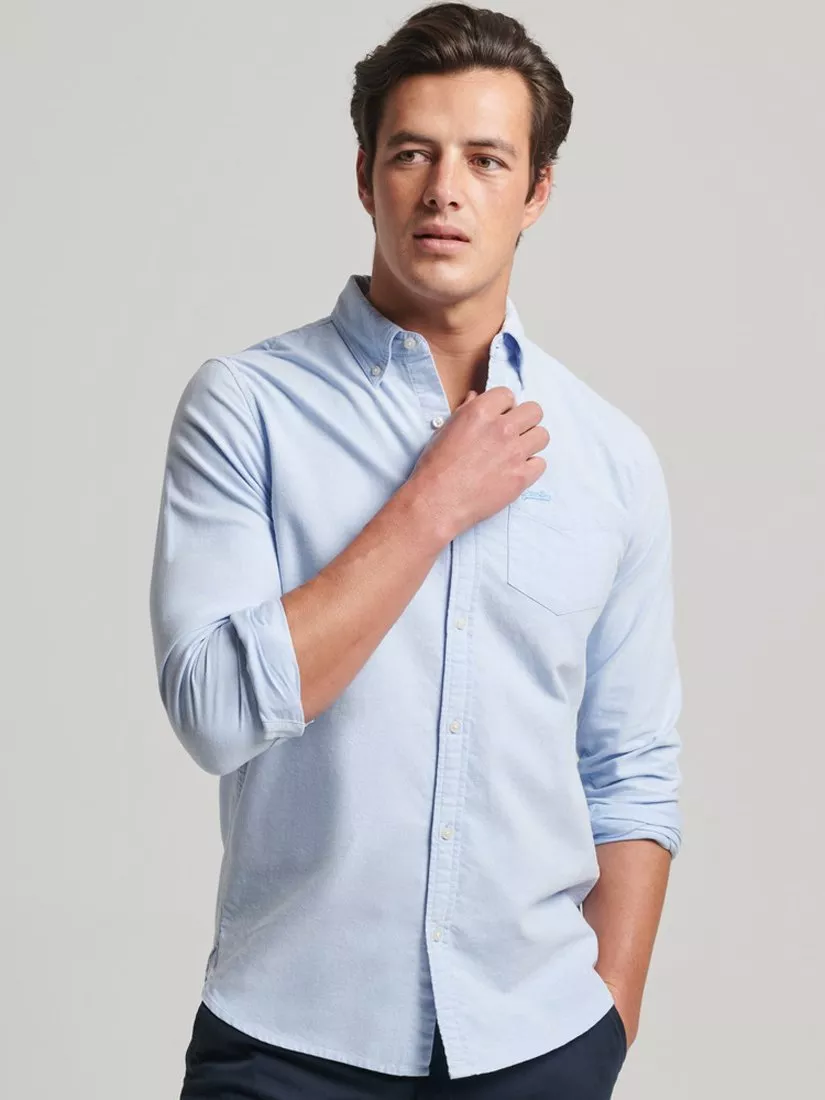 Offering a relaxed fit with a box pleat back and button-down collar, this classic oxford shirt makes a great smart-casual look. Crafted from washed organic cotton, go for your normal size.