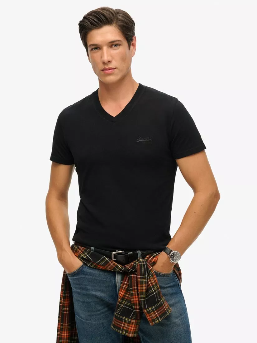 The V-neck tee is one of those wardrobe staples. Bringing a different edge to your look than its crew neck cousin, it's as happy being that foundation layering piece as it is being front and centre as the hero of your outfit. No matter which way you choose to wear this classic, you can be sure you've got yourself a reliable wardrobe partner. Slim fit - designed to fit closer to the body for a more tailored look Mid-weight fabric Short sleeves Embroidered logo Signature logo tab