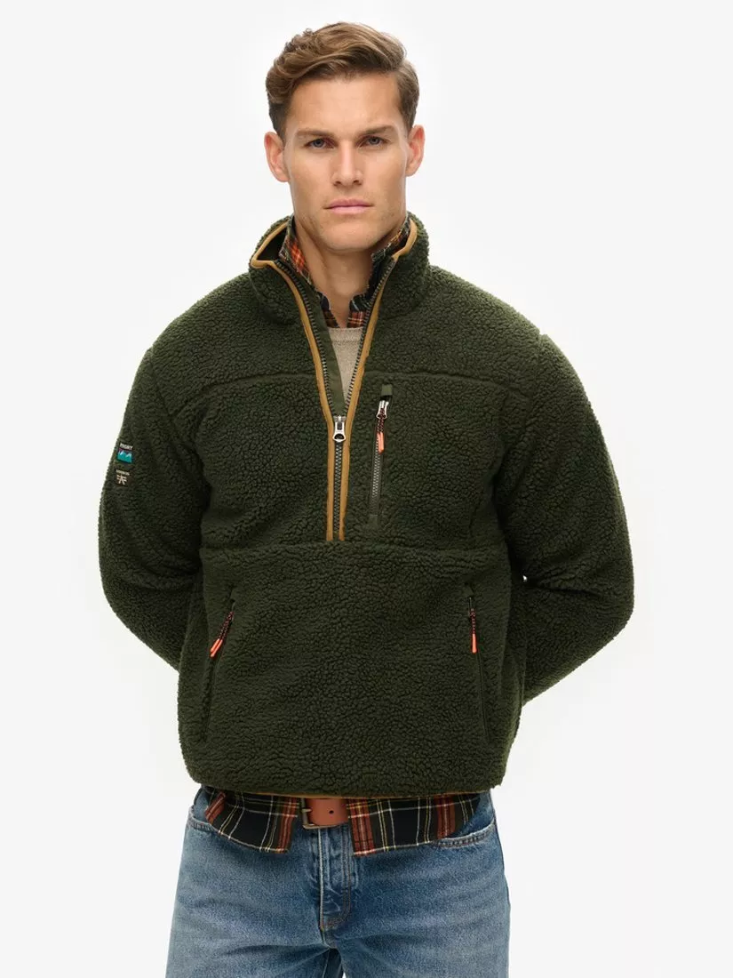 The Outdoor Half Zip Fleece Jumper from Superdry offers a layer of superior comfort when adventuring outside. Taking a walk in the woods or styling with your casual wardrobe, this jumper offers comfort with its soft borg and practicality with several zip fastening pockets.