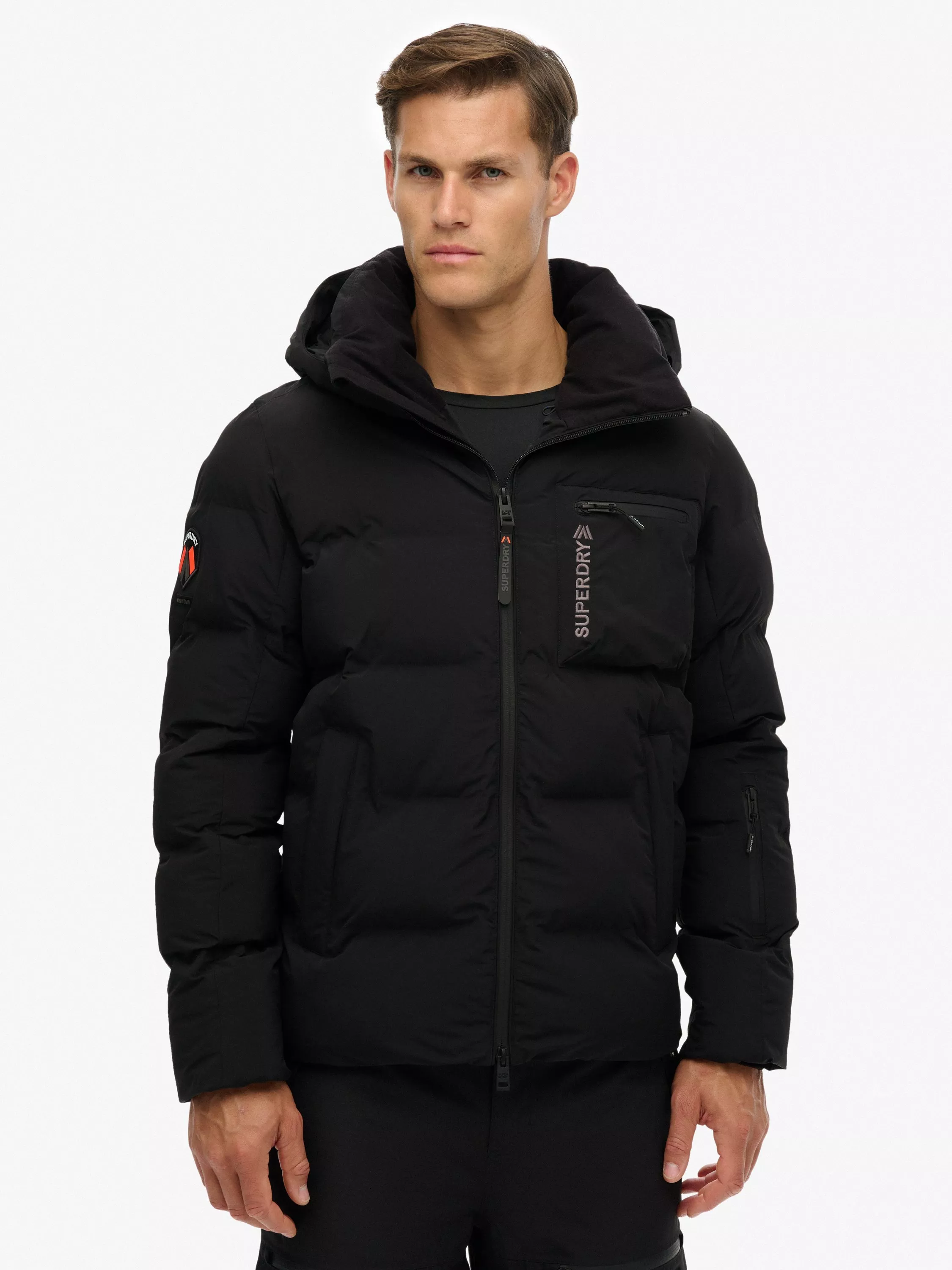 Fully taped seams help prevent water penetration, and the jacket is breathable, providing airflow comfort for low to mid-level activity. The bungee adjustable hemline keeps you snug. Completed with an embroidered Superdry logo on the chest and back, and a signature Superdry badge on the arm. A relaxed fit, the classic Superdry fit.
