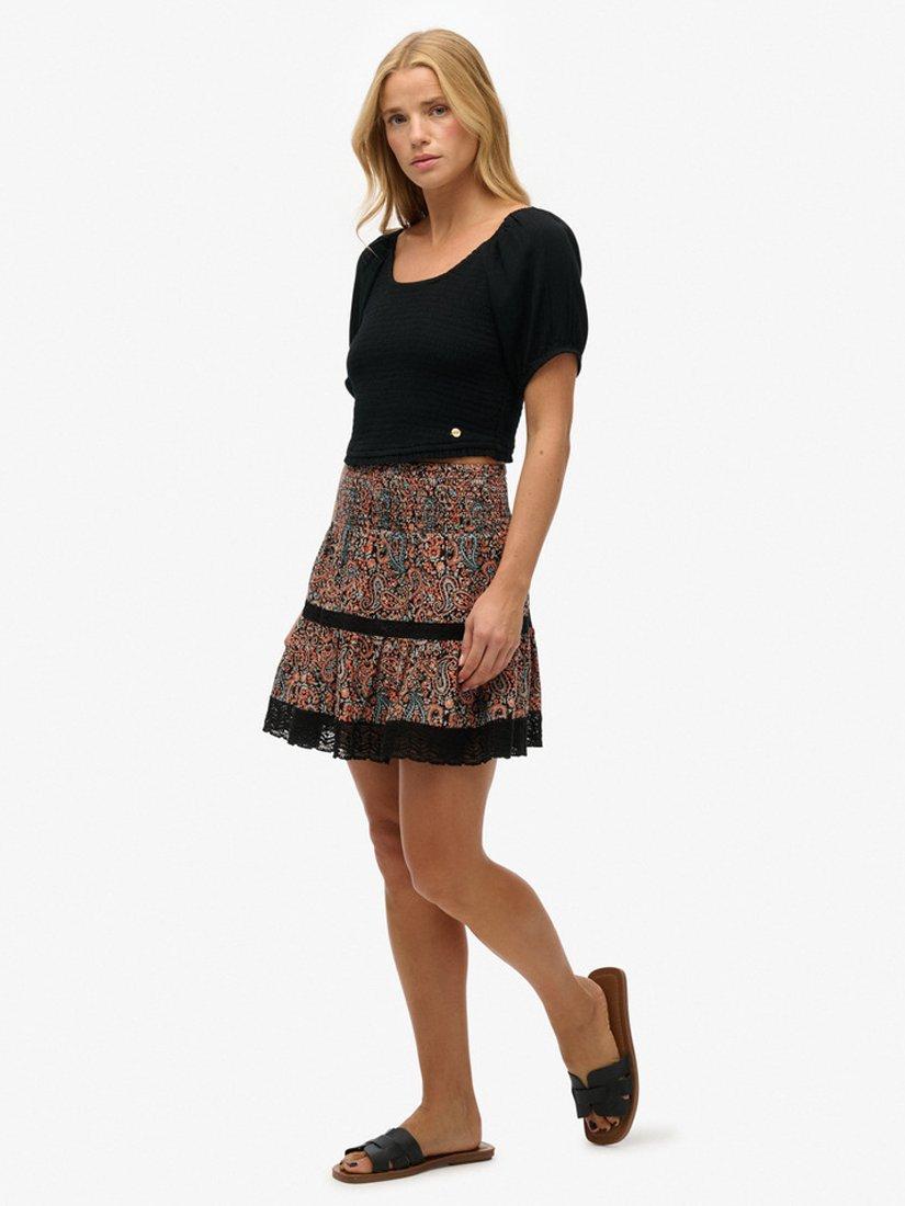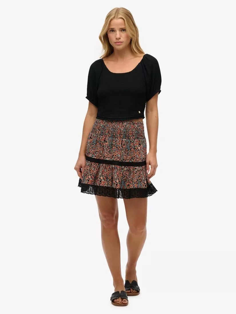 The Printed Lace Trim Mini Skirt is a timeless summer staple that brings you a delicate vintage aesthetic to add to your sunny day wardrobe. This lace detailed free-flowing piece is an effortless way to elevate your summer looks with a touch of bohemian elegance to your personal style, a great addition to your wardrobe.