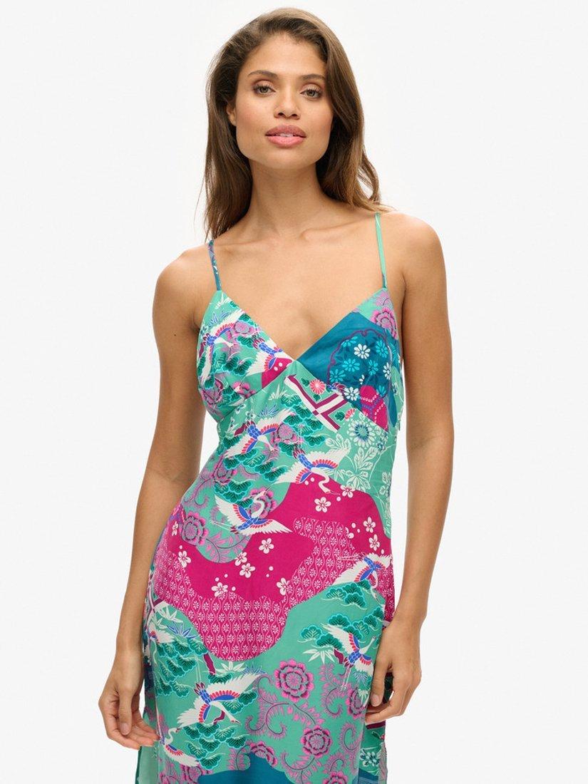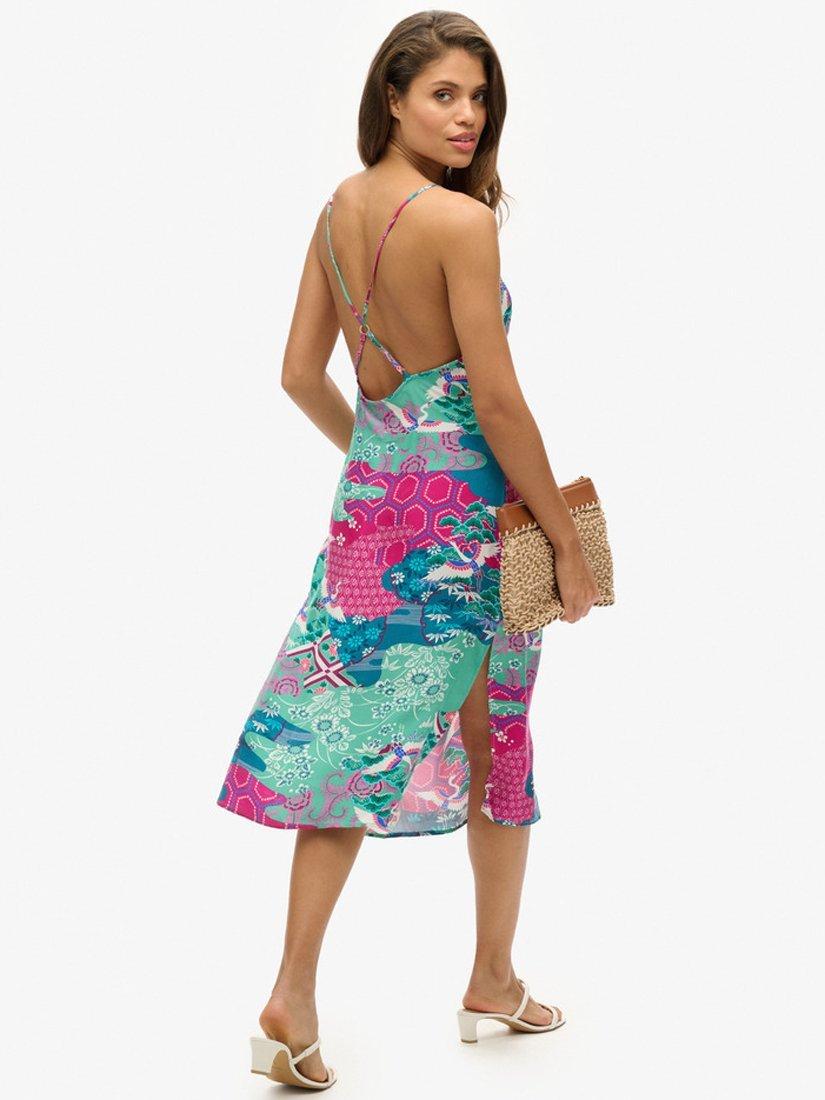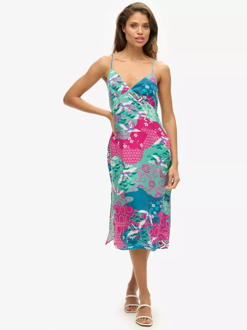 SuperdryPrinted Midi Slip Cami Dress, Magenta Stork Cloud