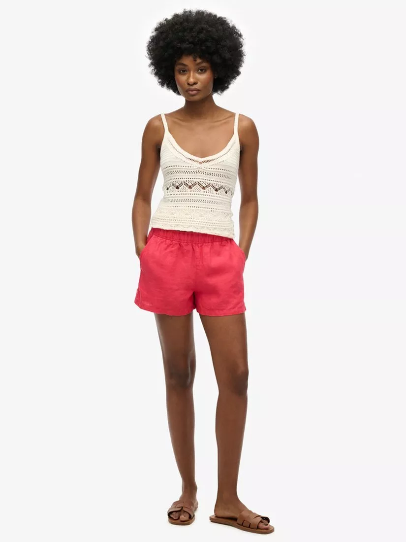 SuperdryPure Linen Shorts, Hyper Fire Coral
