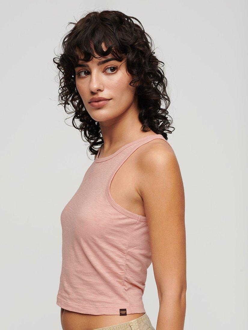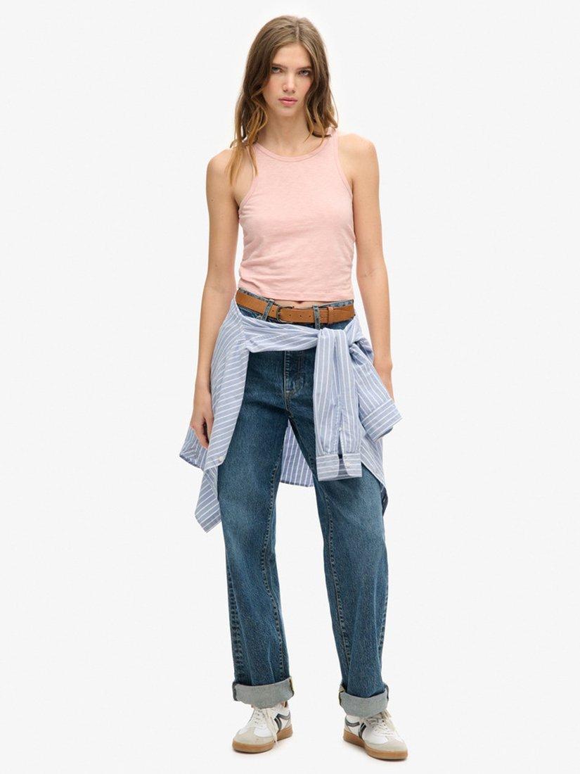 Simply cut with a round neck and a sleeveless design, it is made from a soft cotton blend and slips on well with tonal denim ready for the summer.
