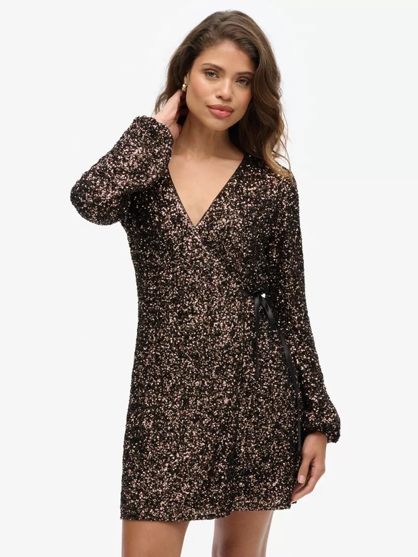 Offered in a feminine, wrap cut, this mini dress from Superdry is crafted from a blend of fabrics. Effortlessly flattering thanks to a fuss-free v-neckline and long sleeves, it is strewn with embellishment.