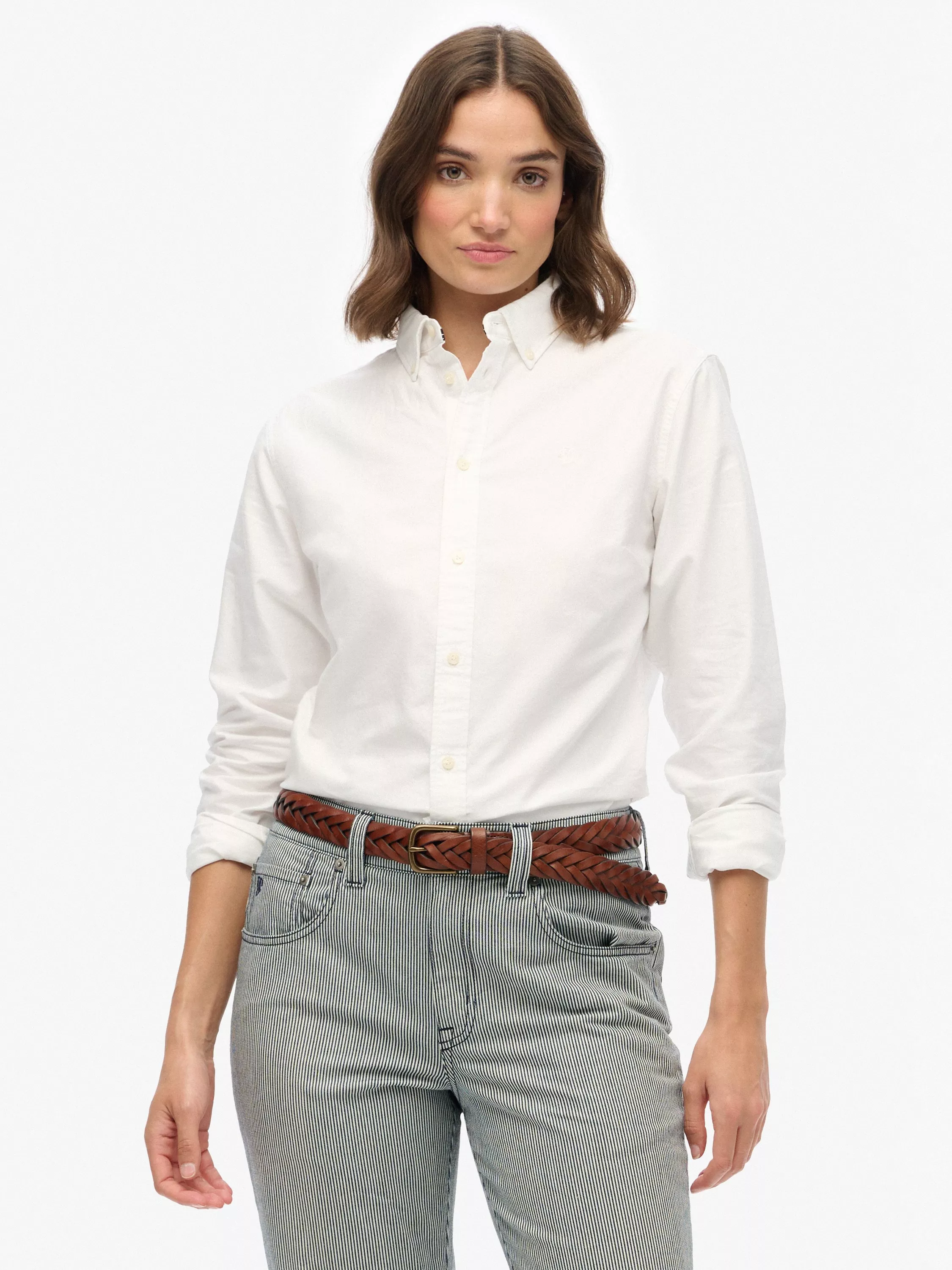 SuperdrySlim Oxford Button Down Long Sleeve Shirt, White