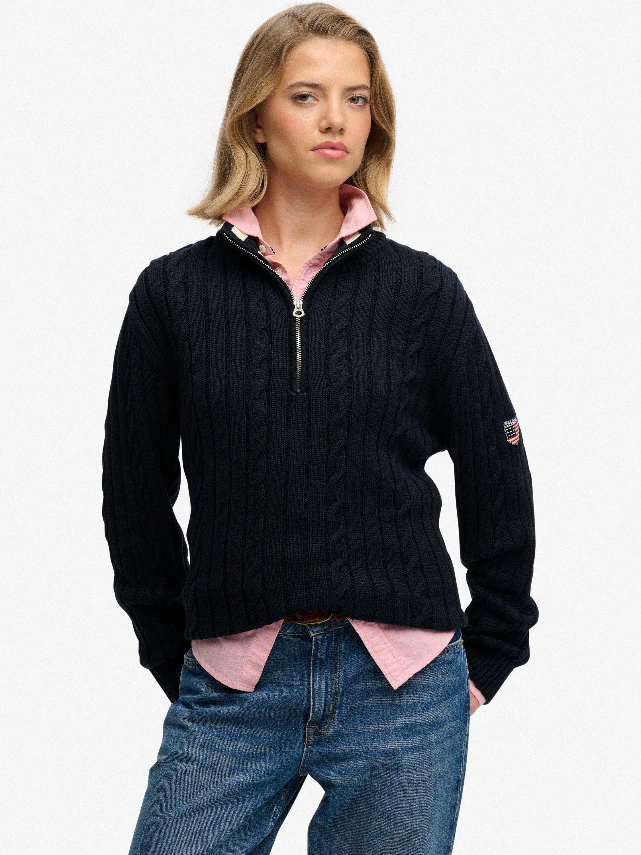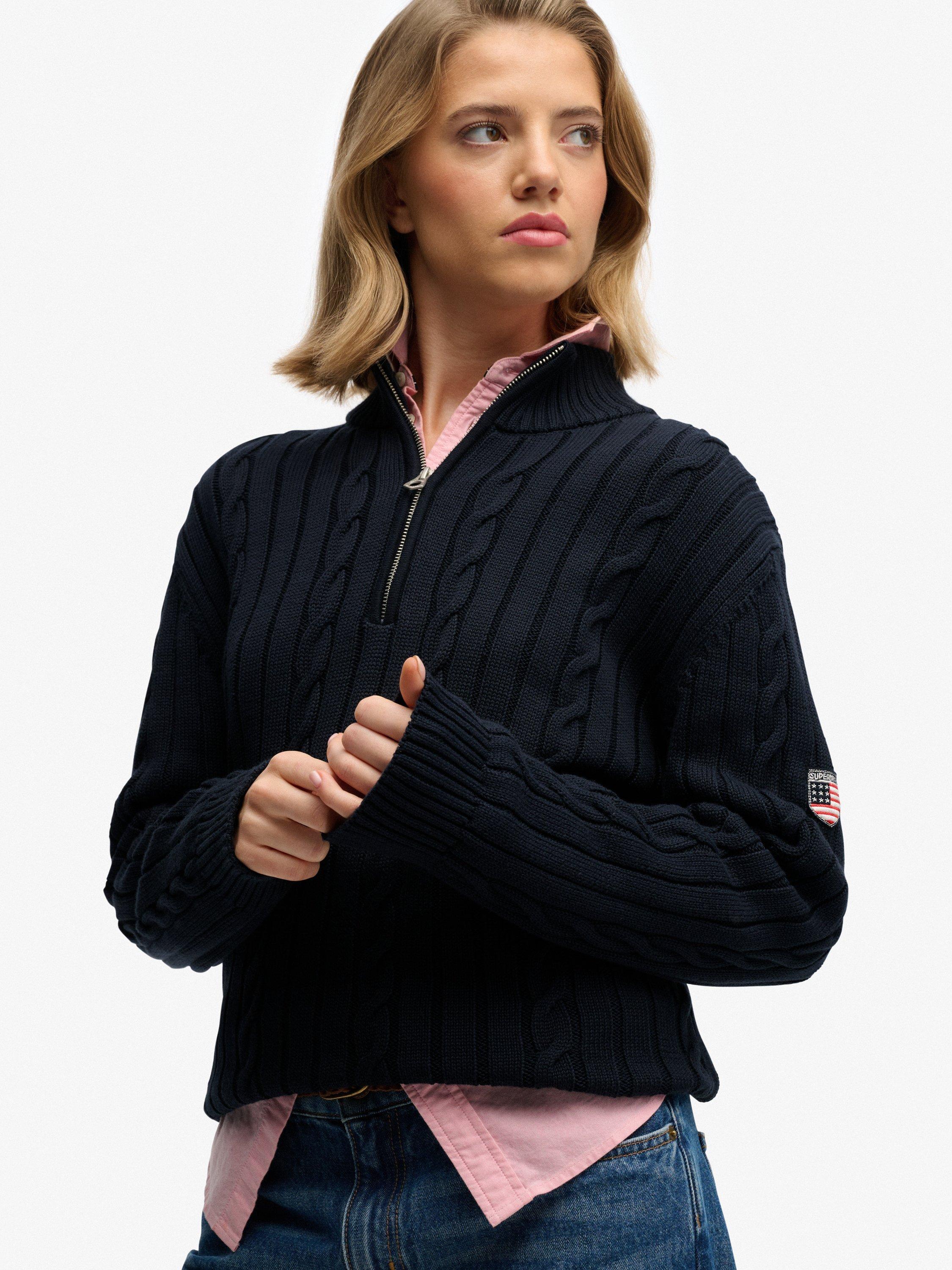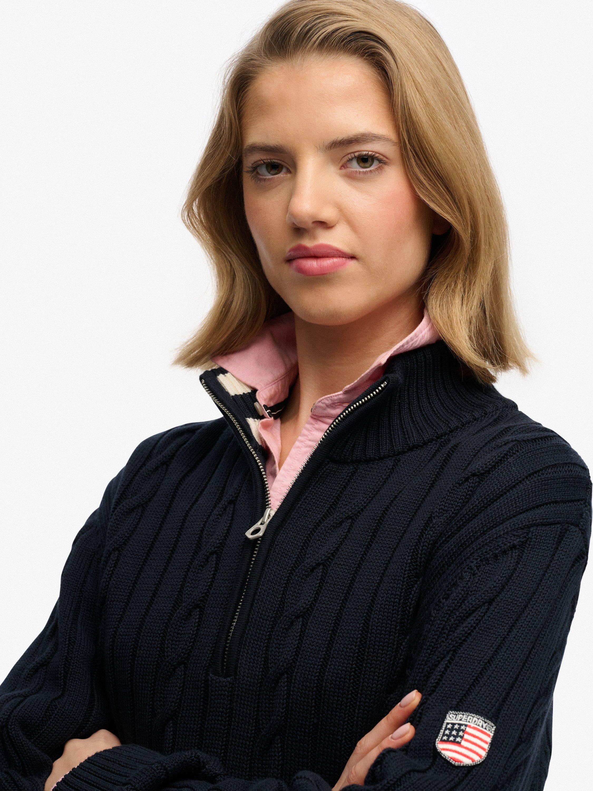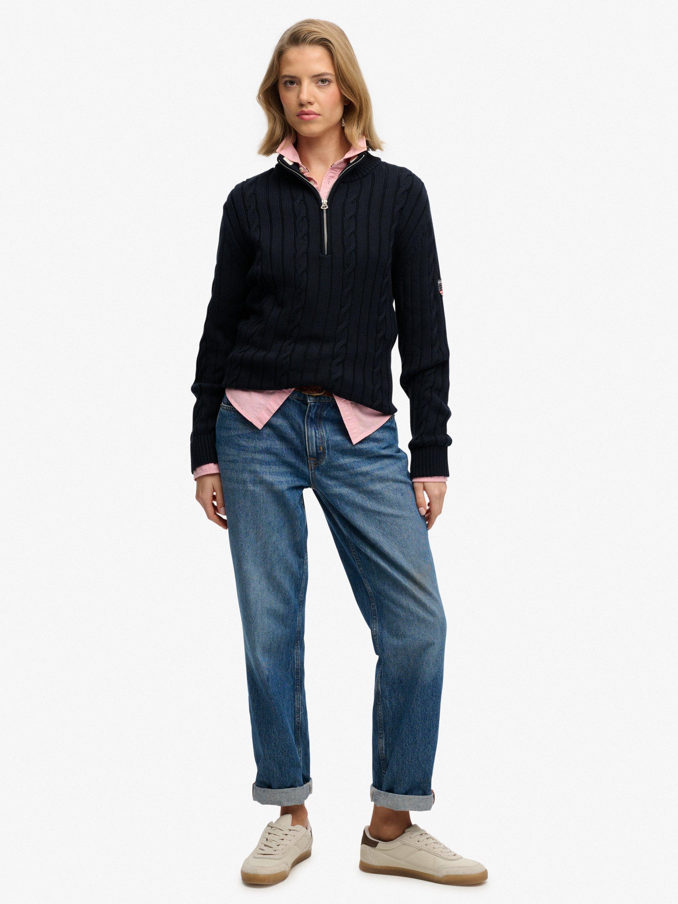 Offering timeless style and comfort, the Slouchy Cable Half Zip Jumper has been designed to keep you effortlessly on trend with its chic cable design and signature half zip look. The loose-fitting feel will ensure maximum comfort, while the ribbed ends and stylish embroidered badge add a touch of luxury and interest.