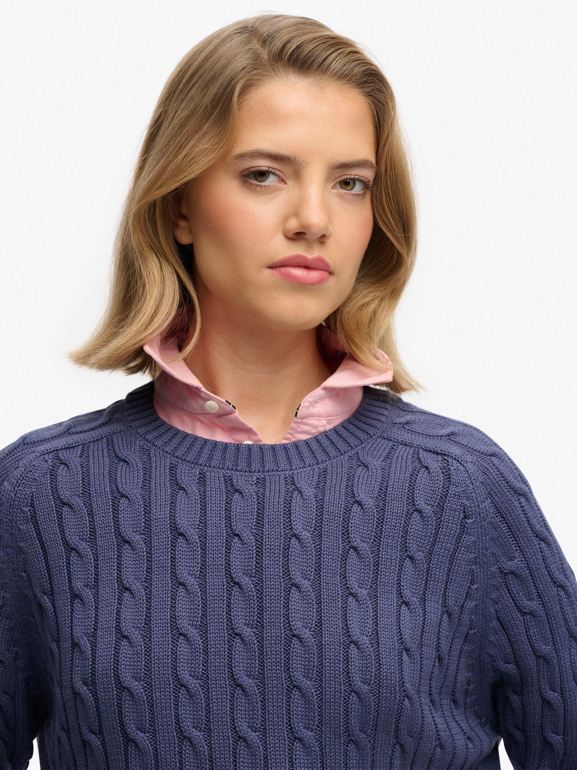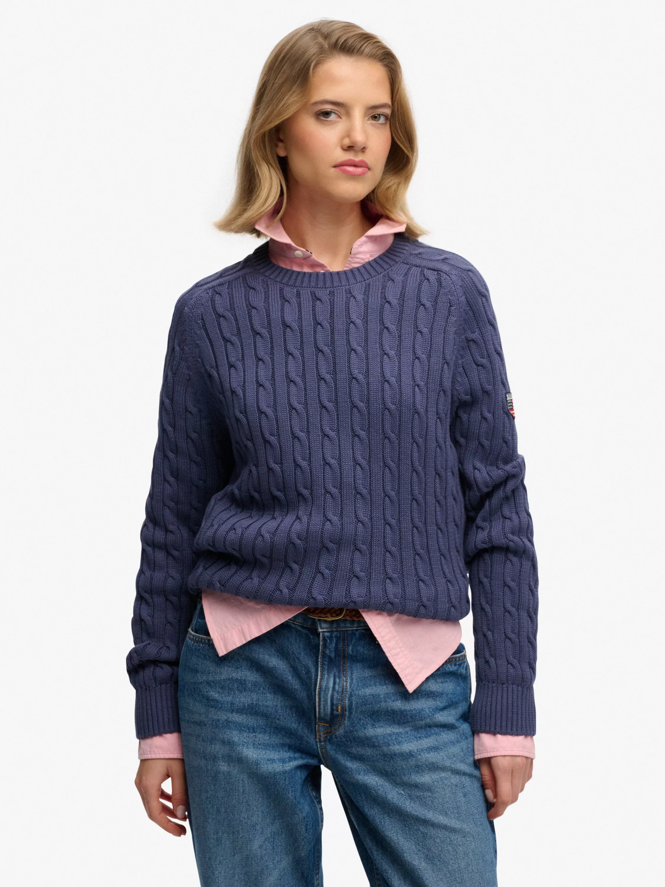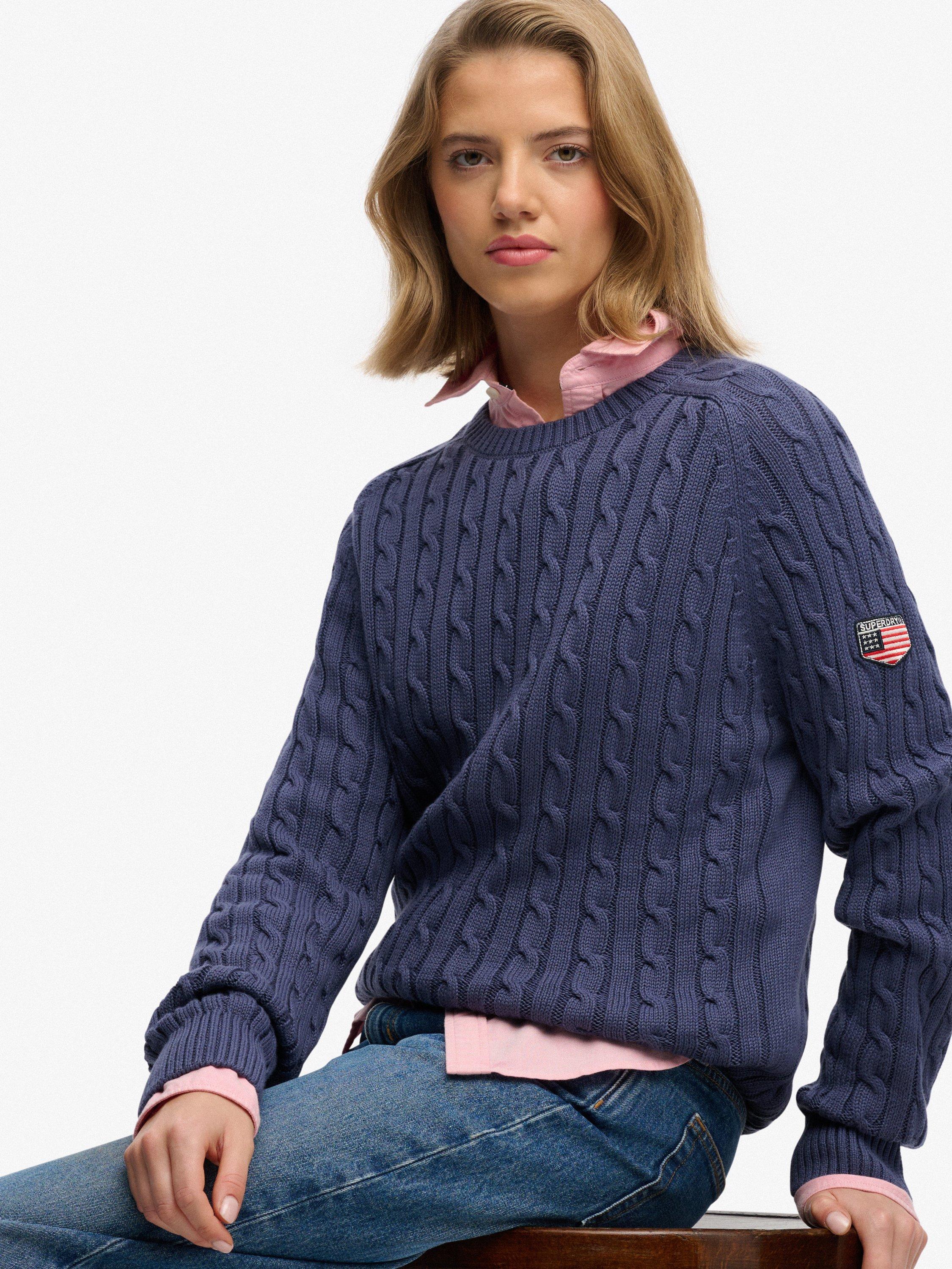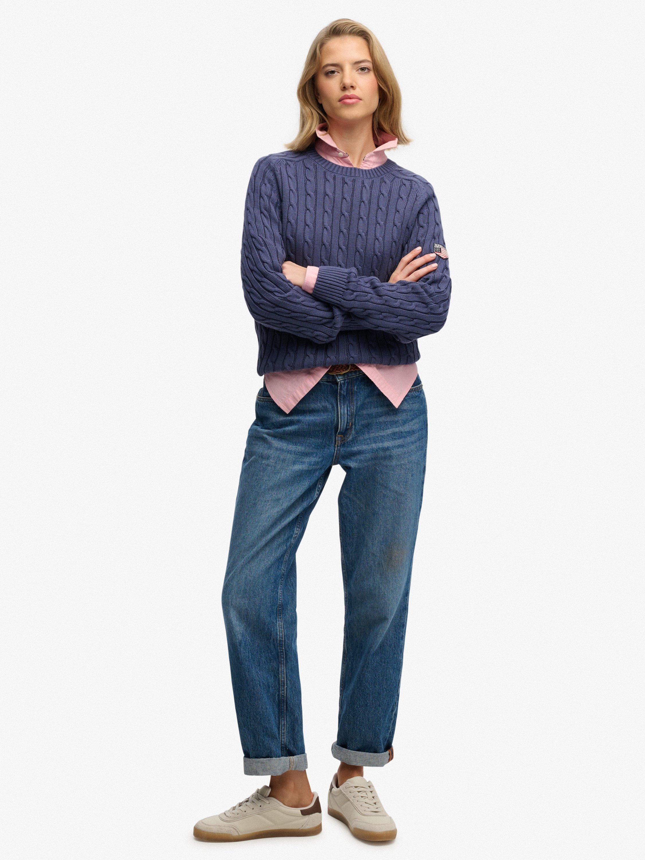 SuperdrySlouchy Cable Knit Jumper, Soft Navy