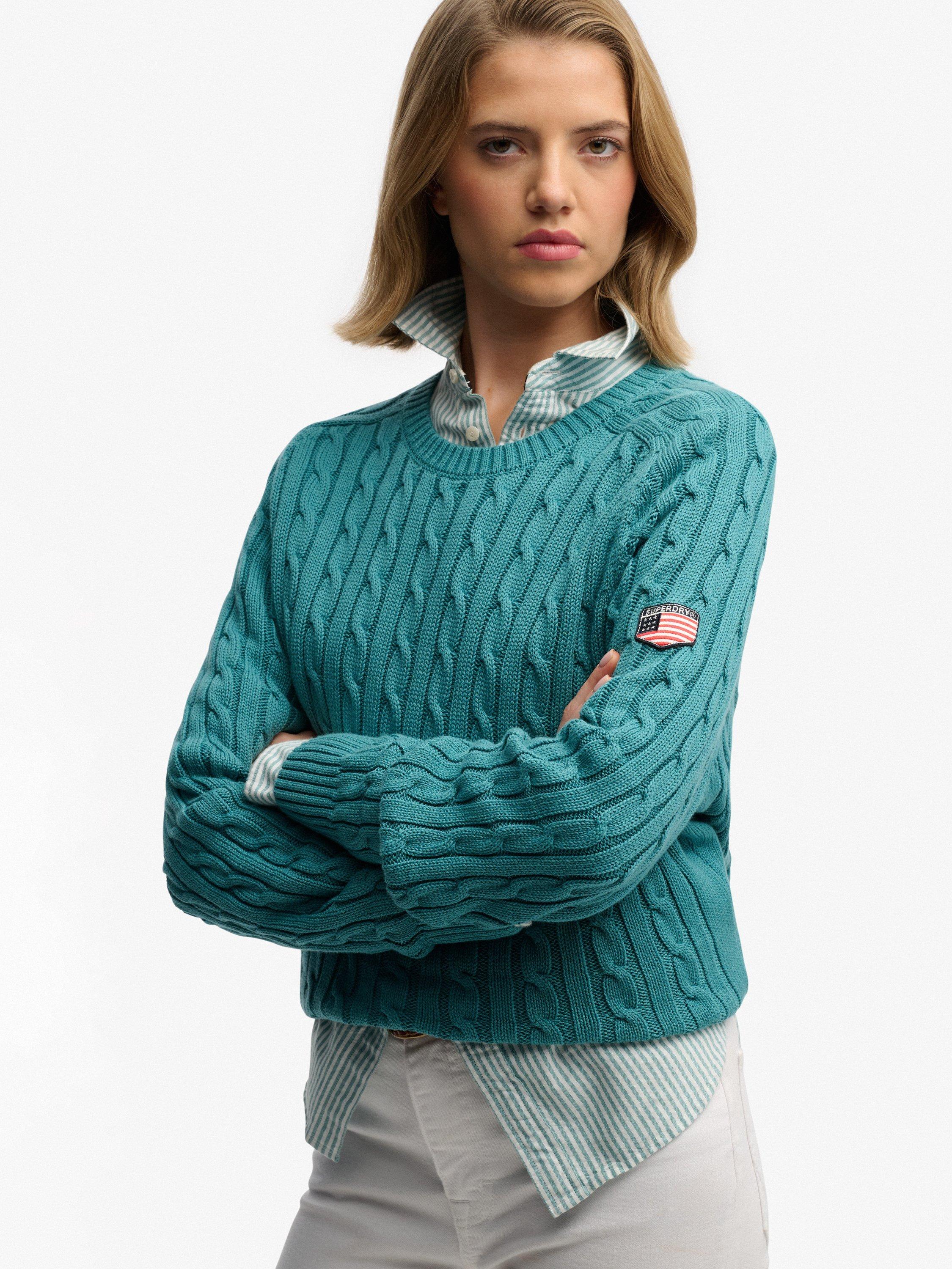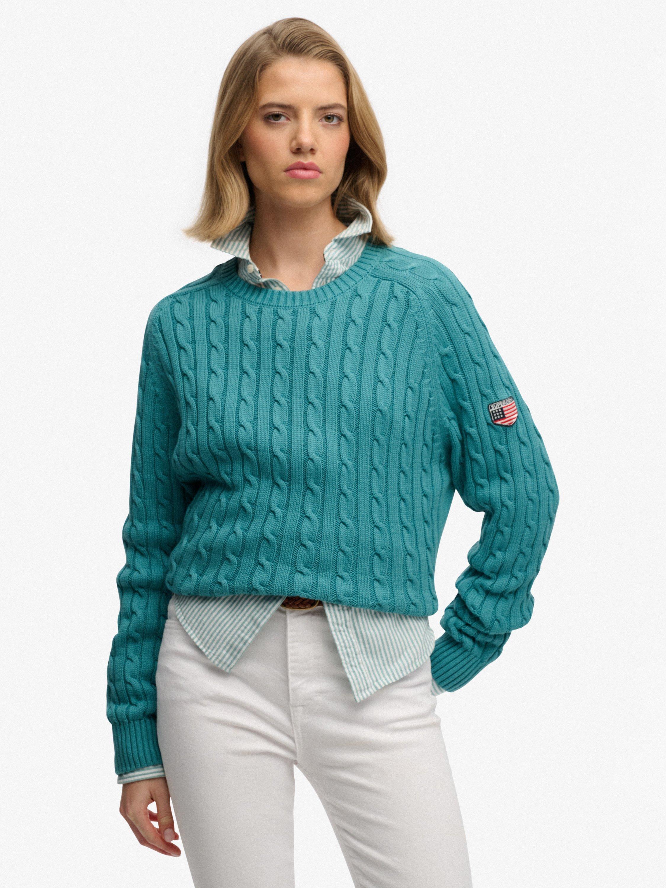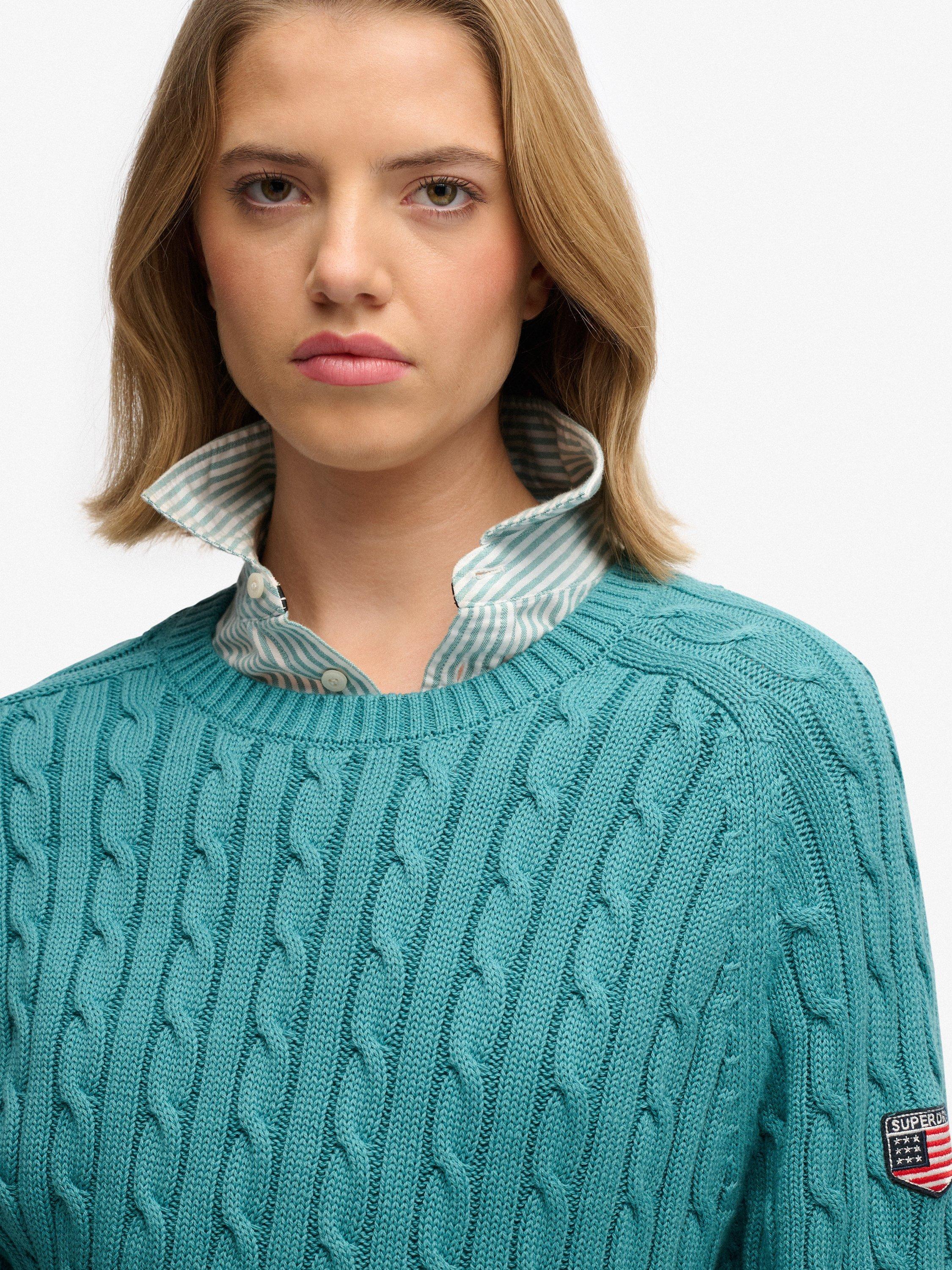 SuperdrySlouchy Cable Knit Jumper, Teal