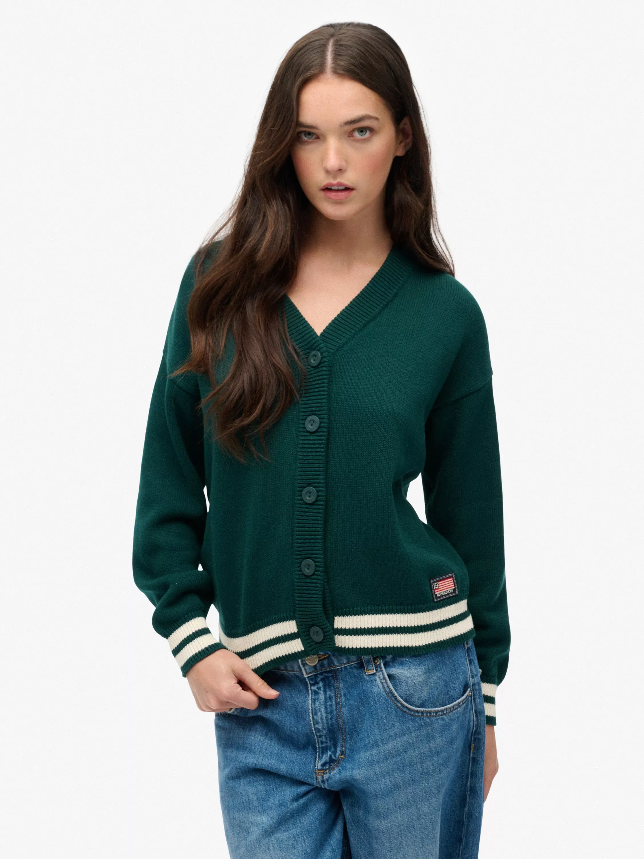 SuperdrySlouchy Knitted Cardigan, Darkest Pine Green
