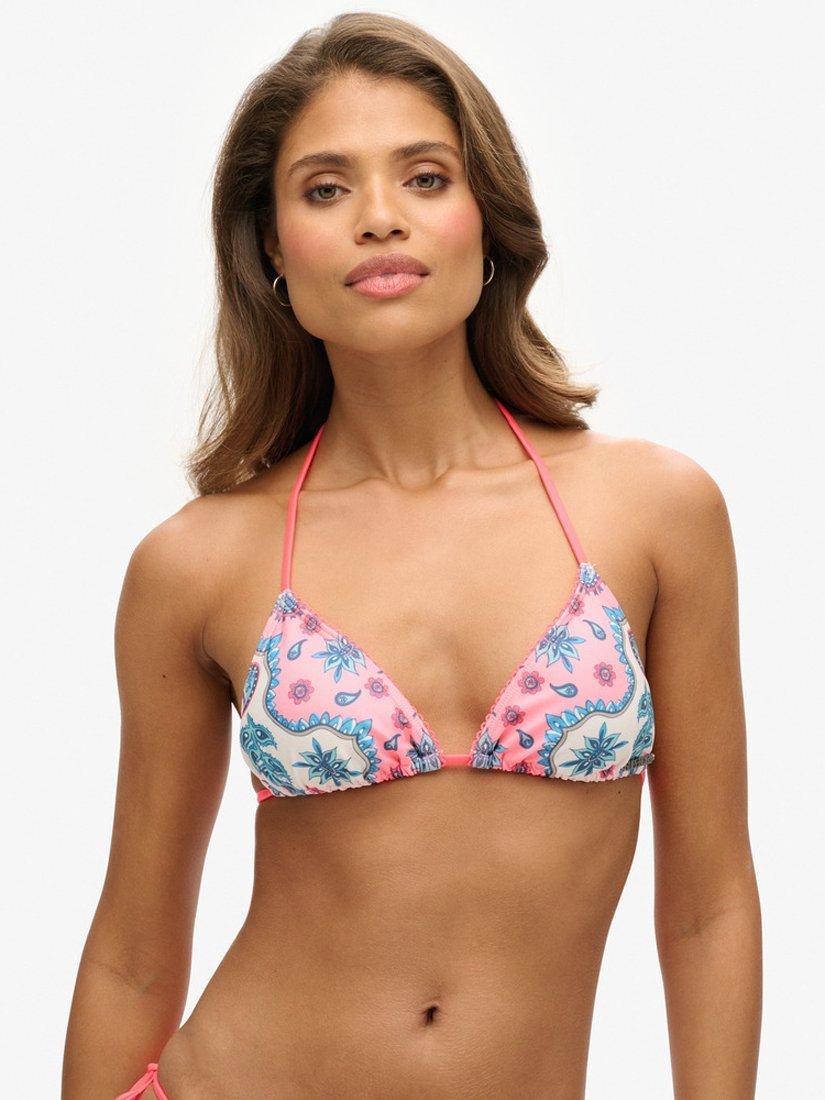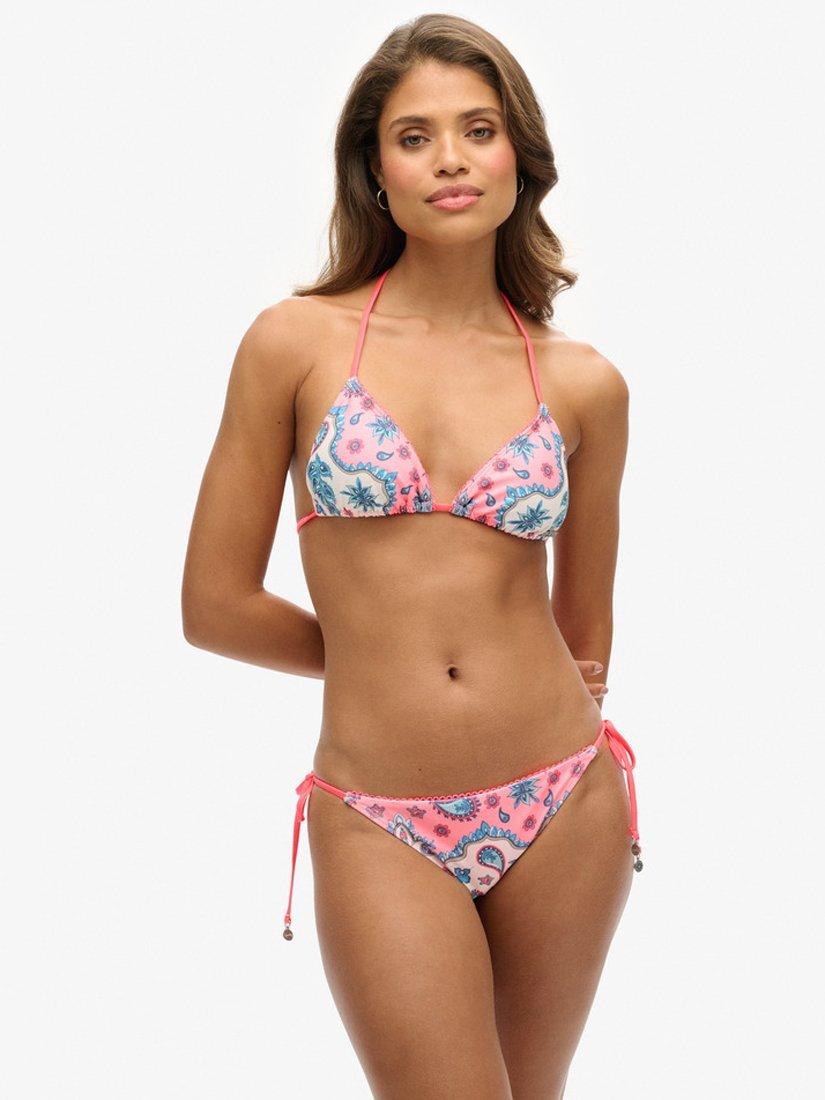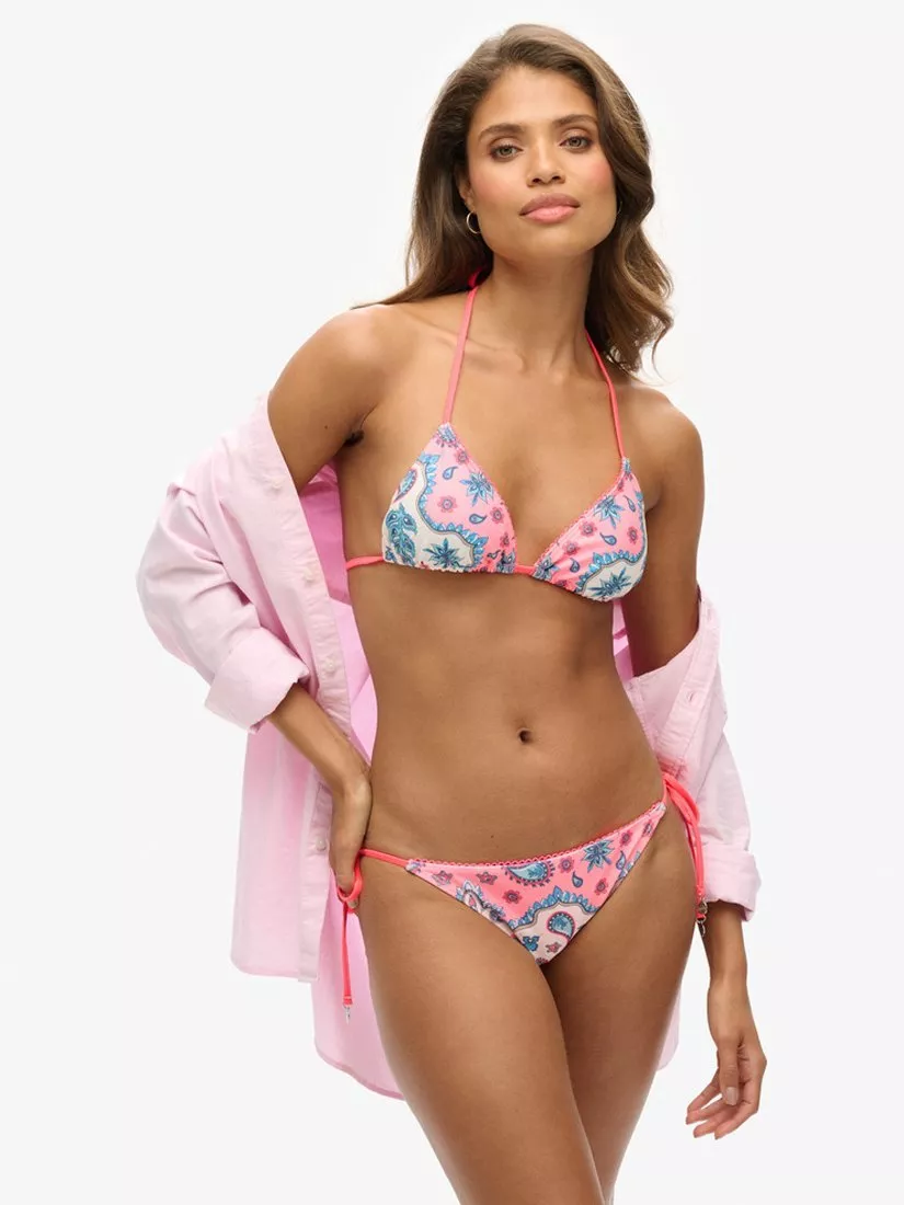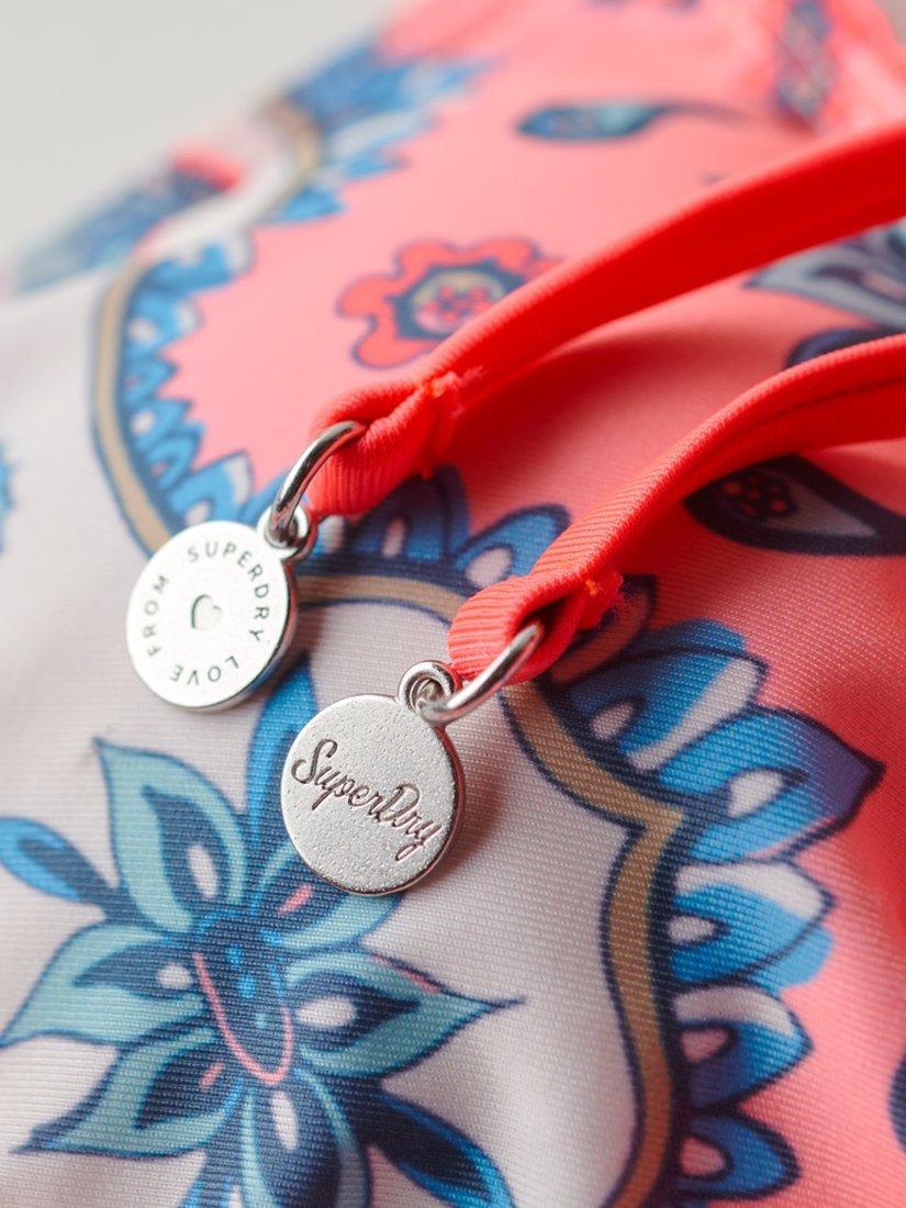 Splashed with an abstract print, this removable padded bikini top by Superdry is designed with a flattering halter neckline, an open back and self-tie straps to adjust as fits best for you. Don yours with the matching bottoms for take-notice appeal.