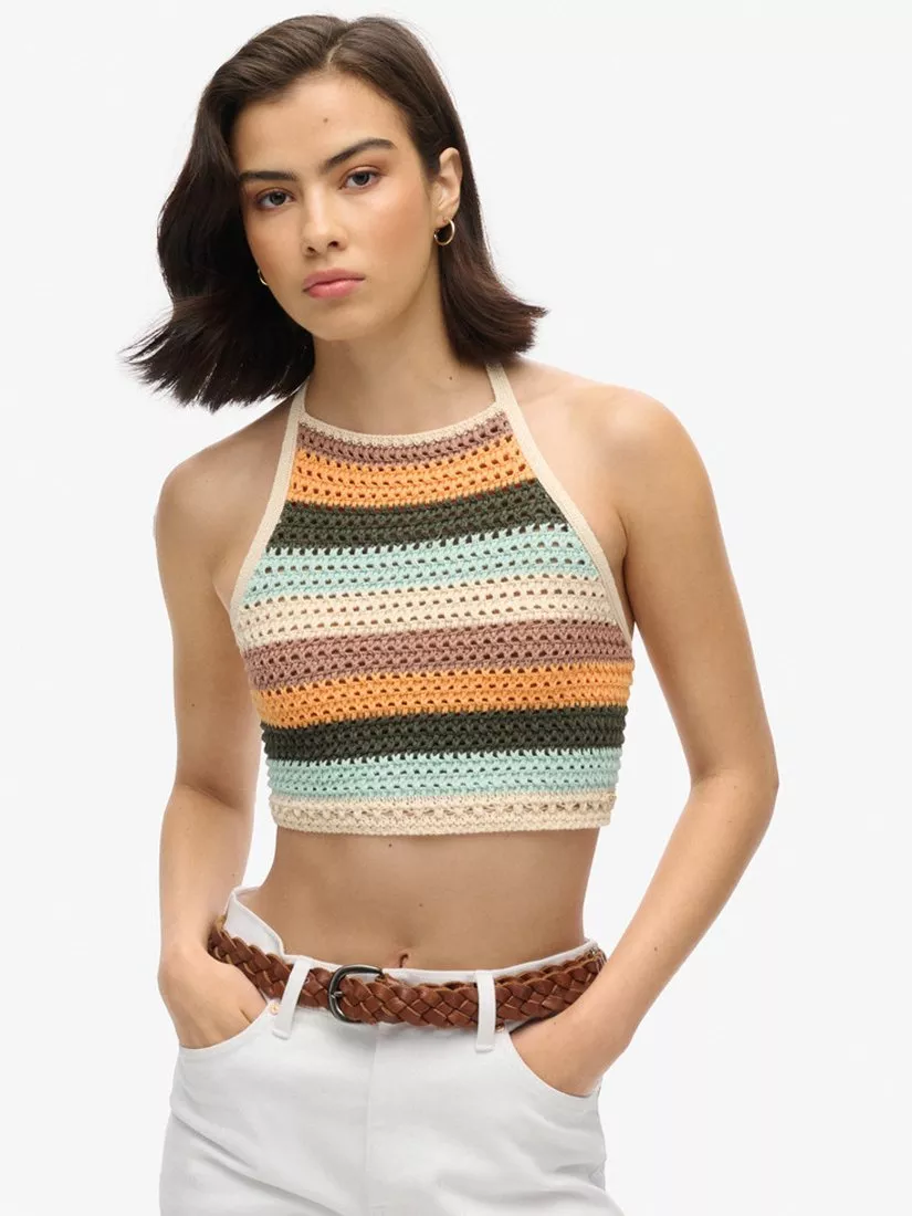 For an effortlessly trendy look, the Cropped Halter Crochet Top is your new best friend. Fully adjustable to give you that perfect fit, you'll be crafting perfectly curated outfits all season long, without worrying about discomfort.