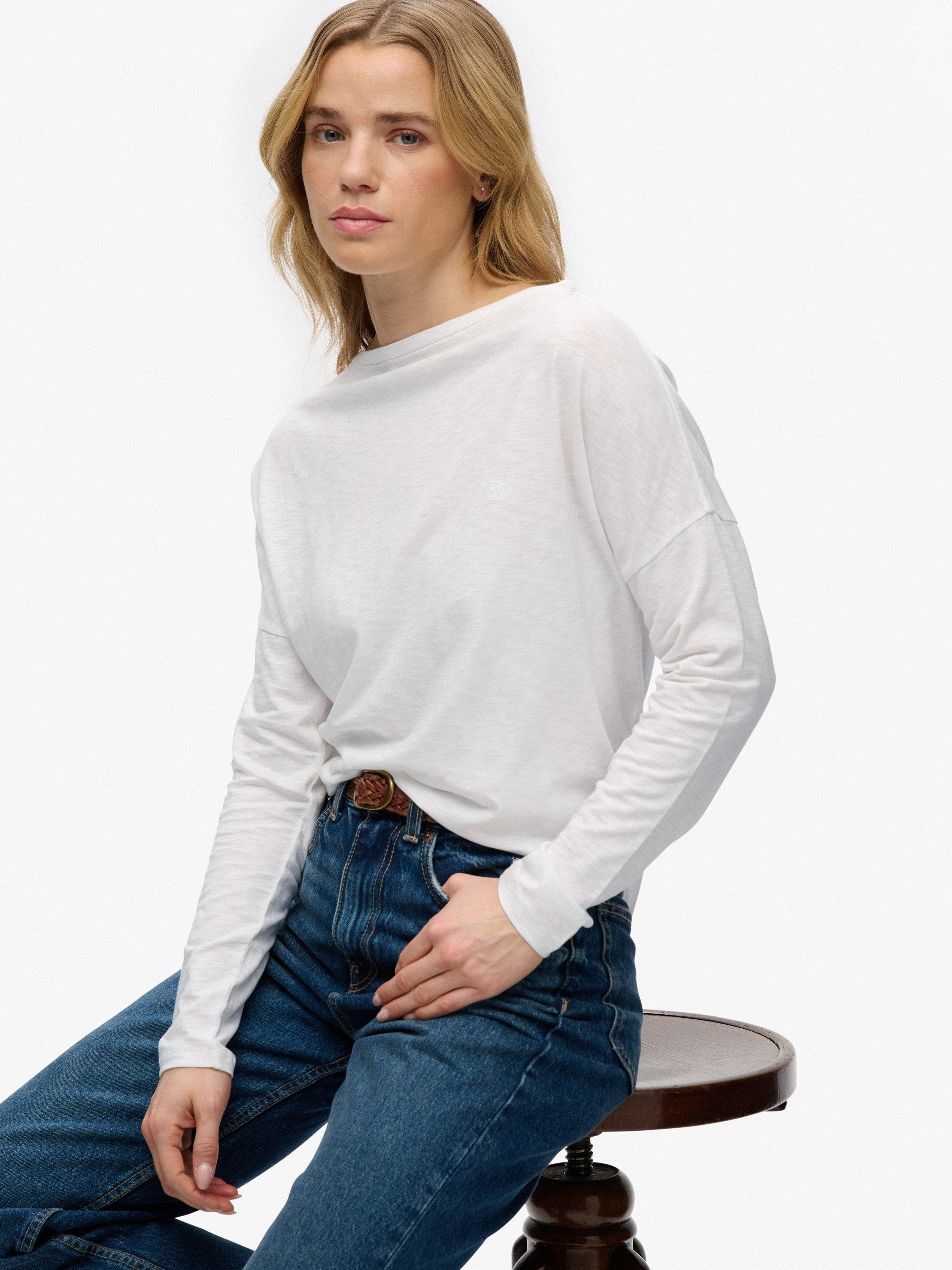 SuperdryStudios Boat Neck Slub Long Sleeve Top, Optic