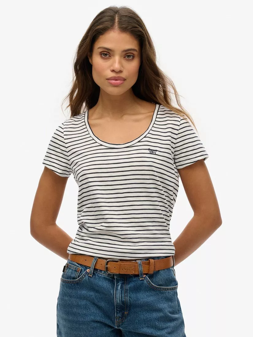 SuperdryStudios Scoop Neck T-Shirt, Optic/Navy