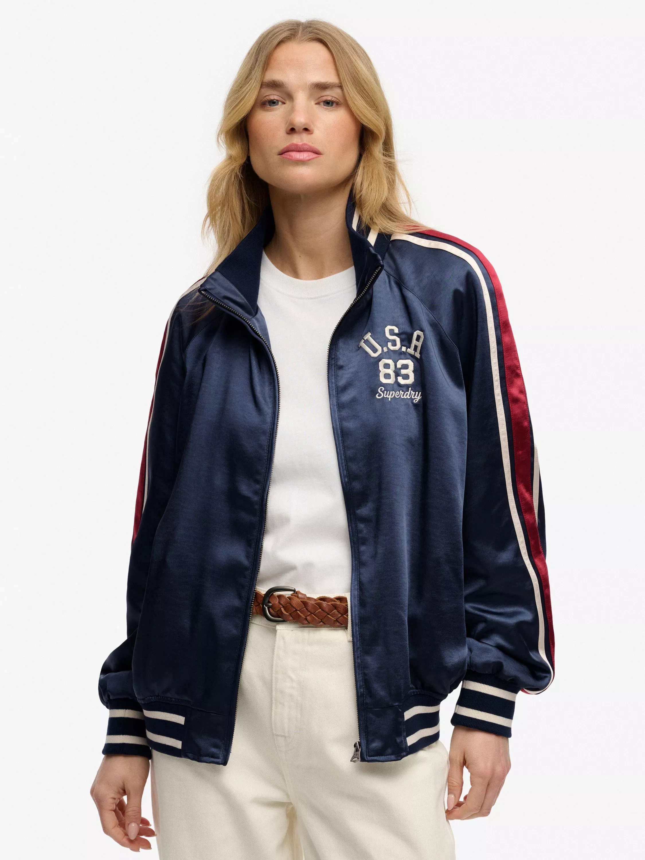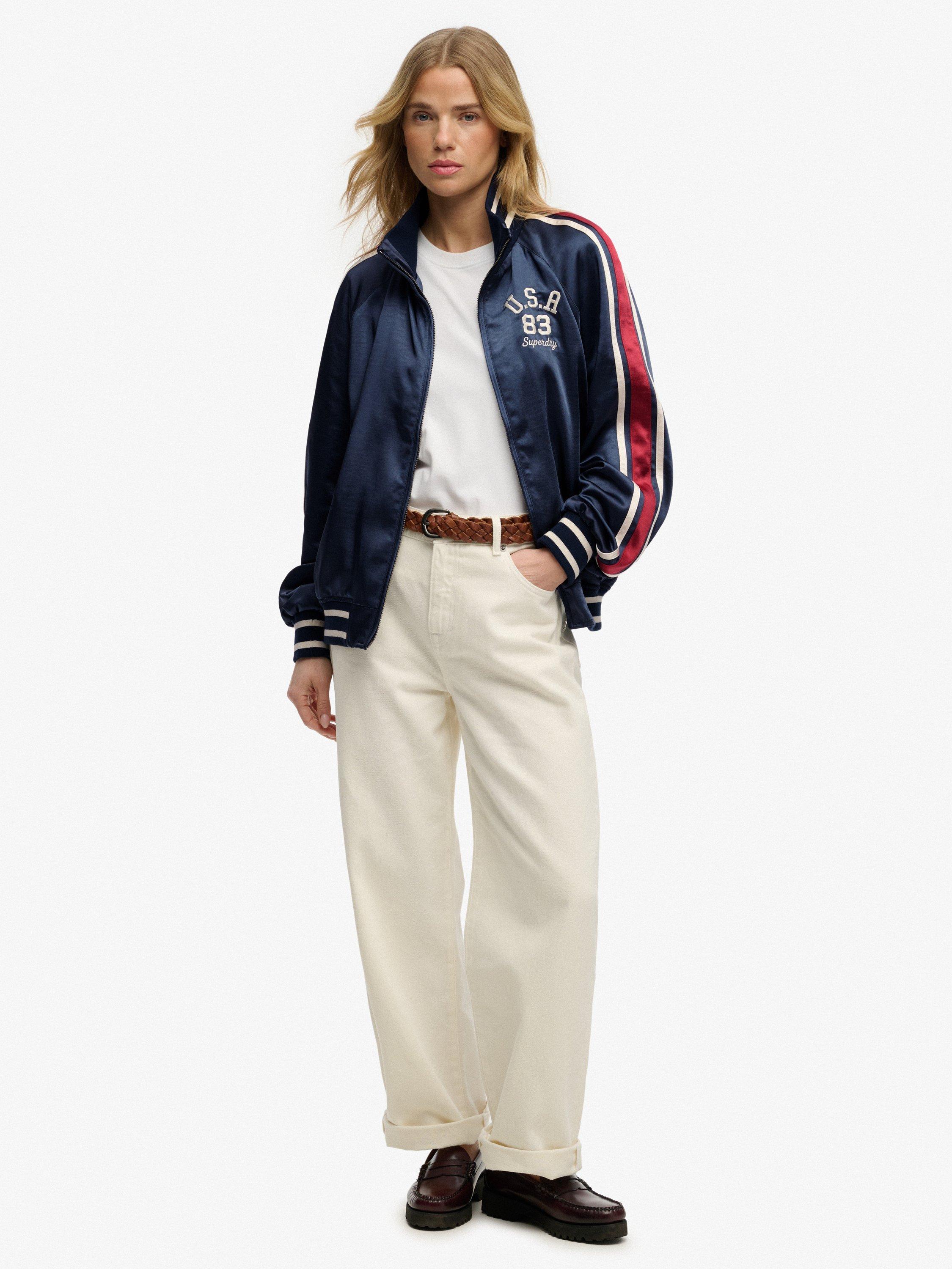 In need of a versatile statement piece? Look no further, the Suika Track Jacket is the perfect layer to elevate any outfit. With varsity‑striped ribbed trims and bold sleeve detailing, it carries a classic varsity feel with a modern edge. A gorgeous piece designed to showcase your authentic style effortlessly.
