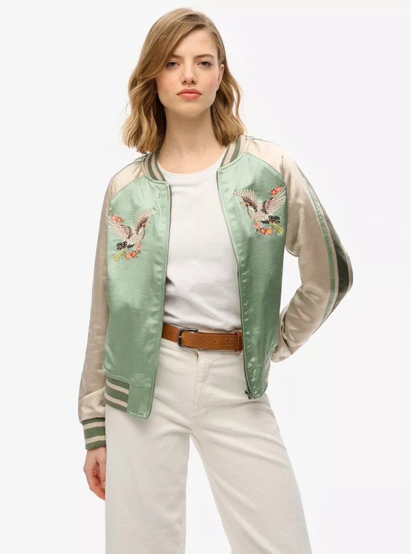 SuperdrySuikajan Embroidered Bomber Jacket, Desert Sage Green