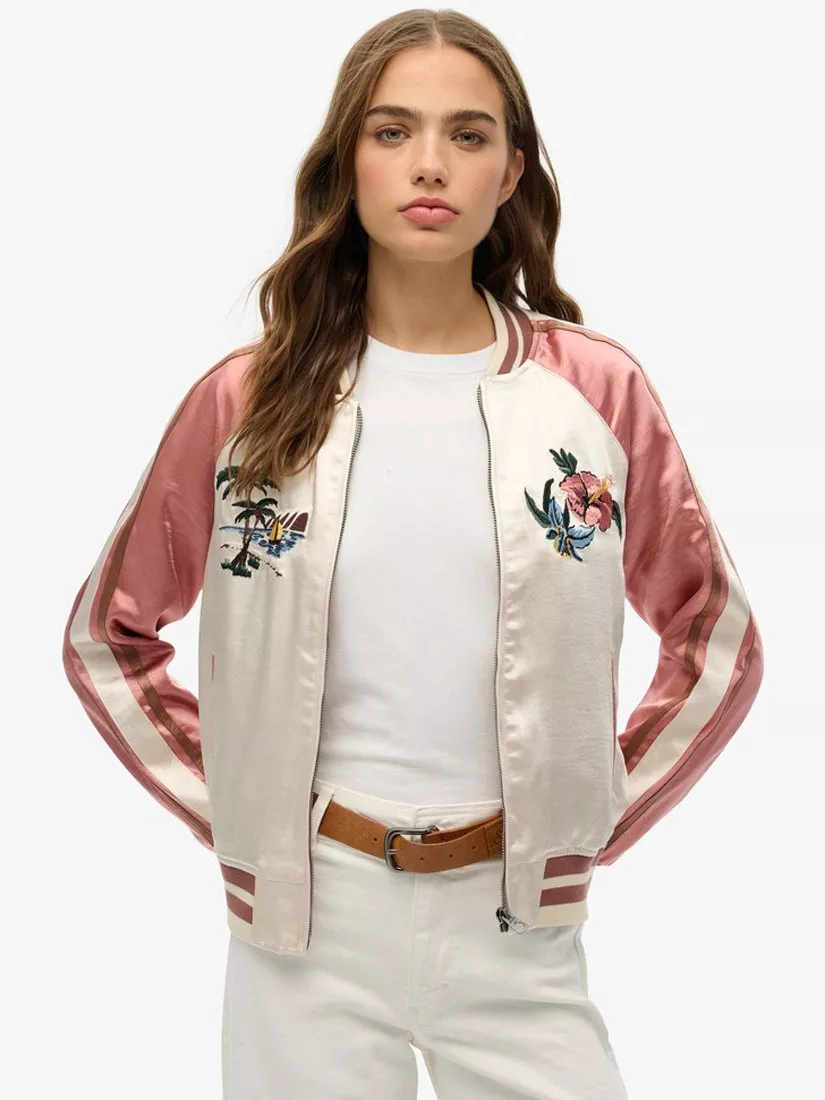 SuperdrySuikajan Embroidered Bomber Jacket, Rice White