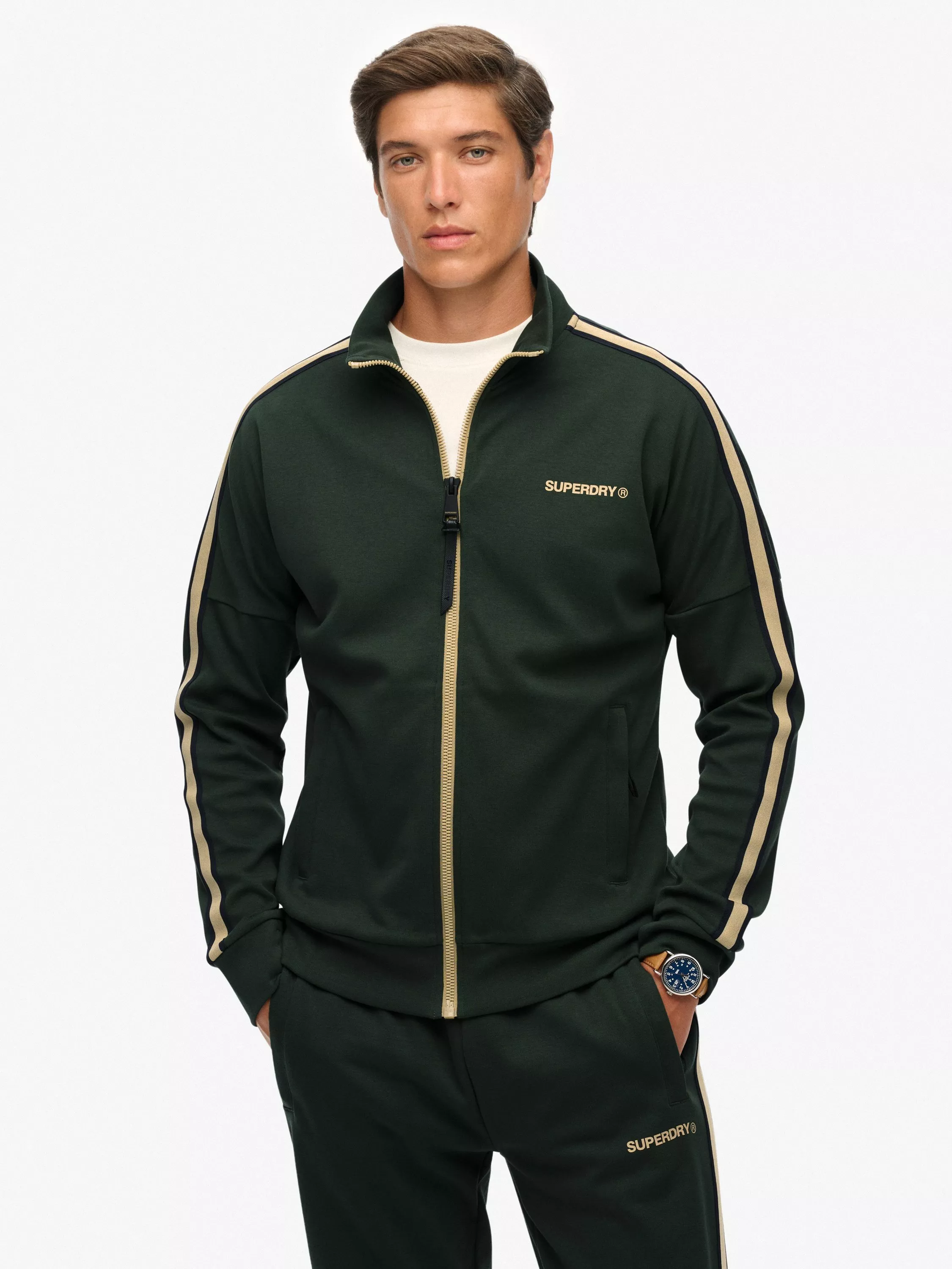 SuperdryTech Cult Loose Track Top, Deep Forest Green