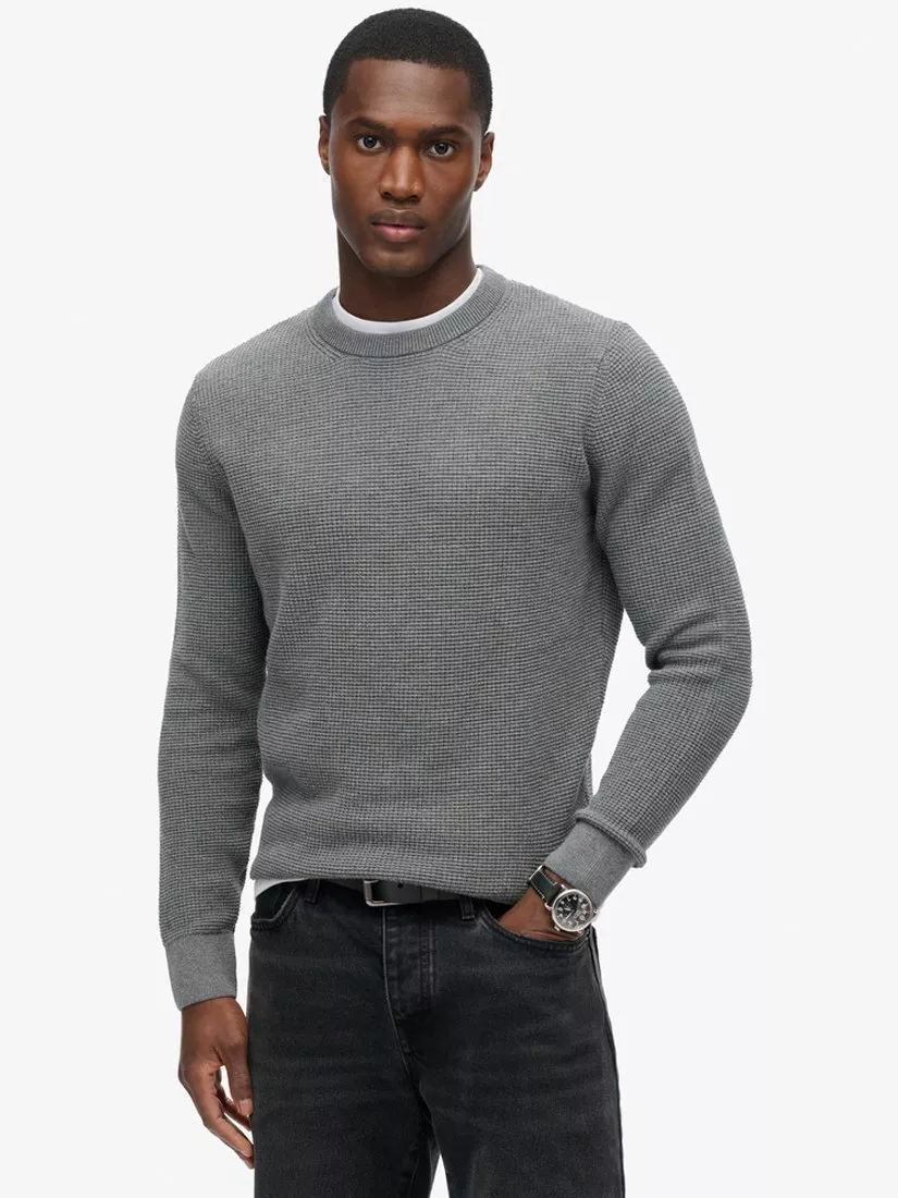 Pulling on easily in cooler climes, this crew neck jumper from Superdry is made from pure cotton for breathable wear.