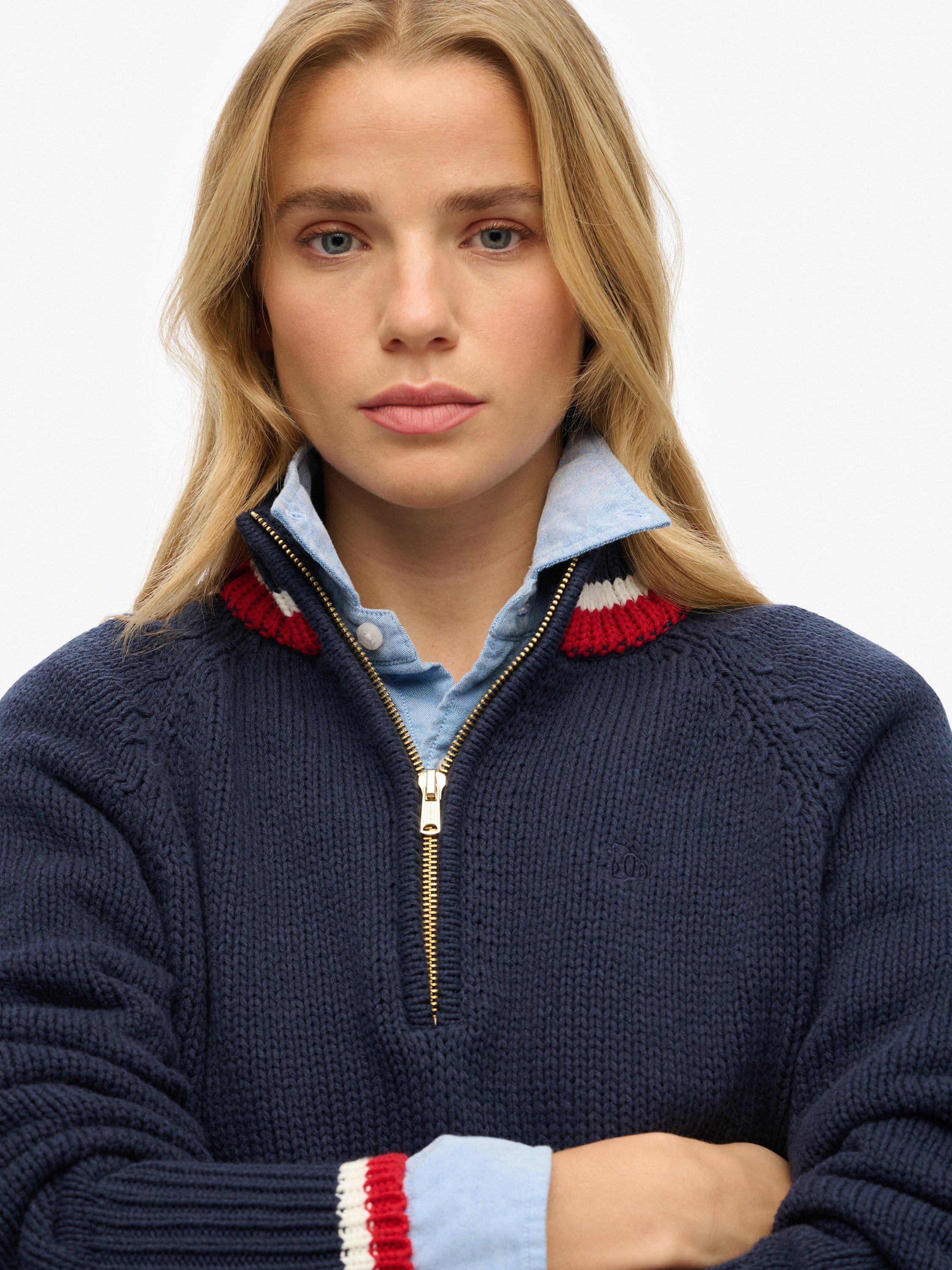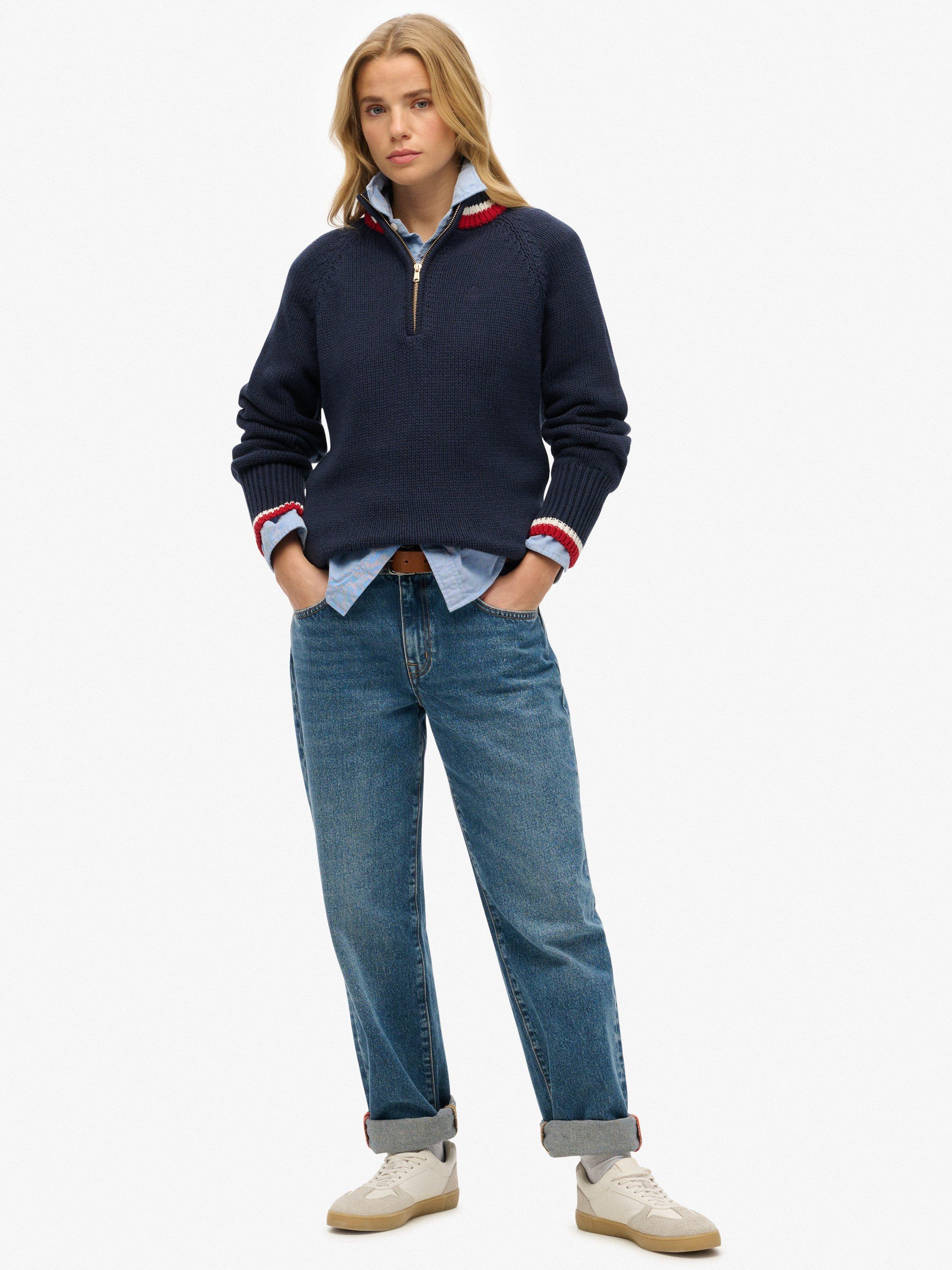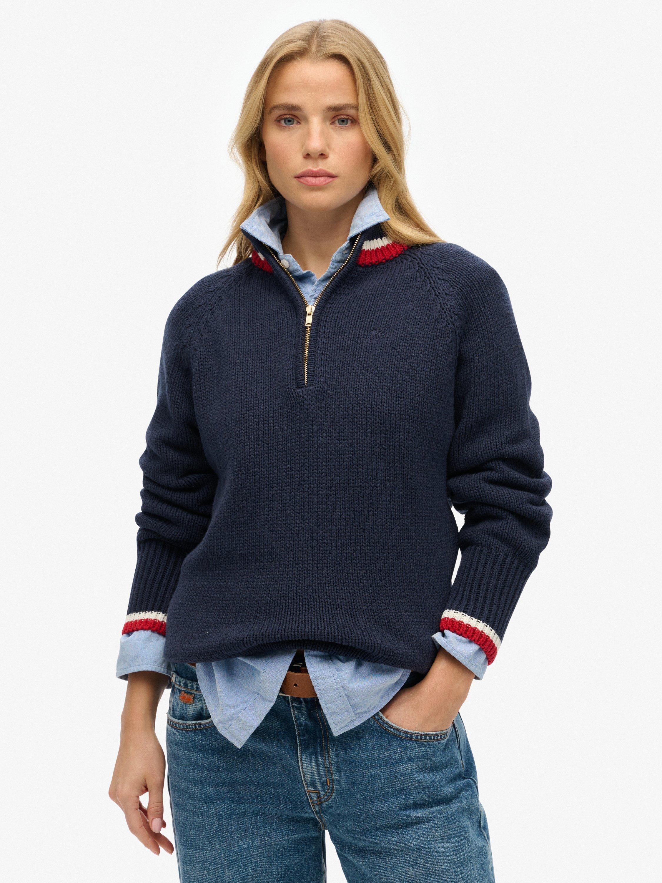 SuperdryTipped 1/2 Zip Jumper, Eclipse Navy