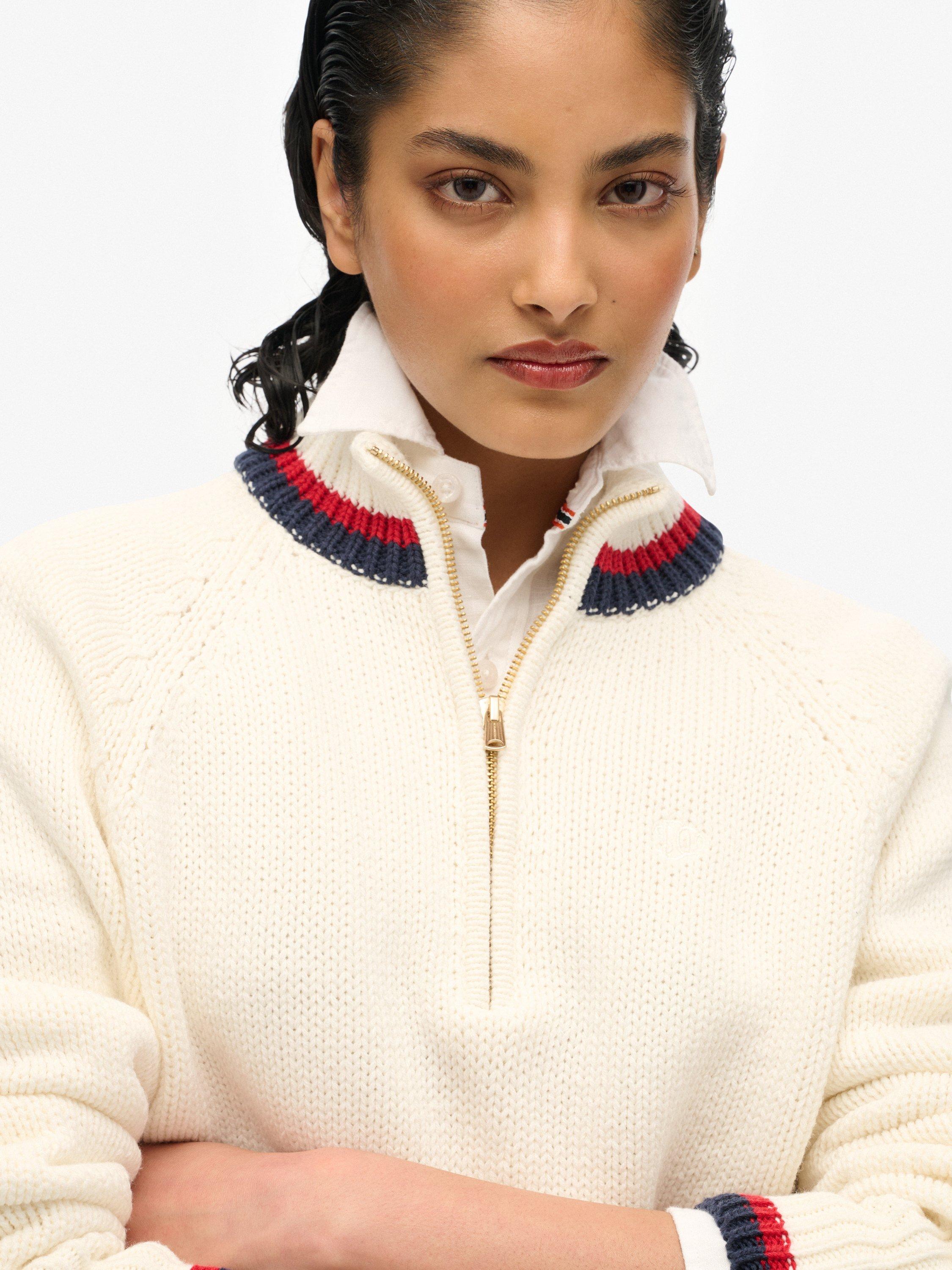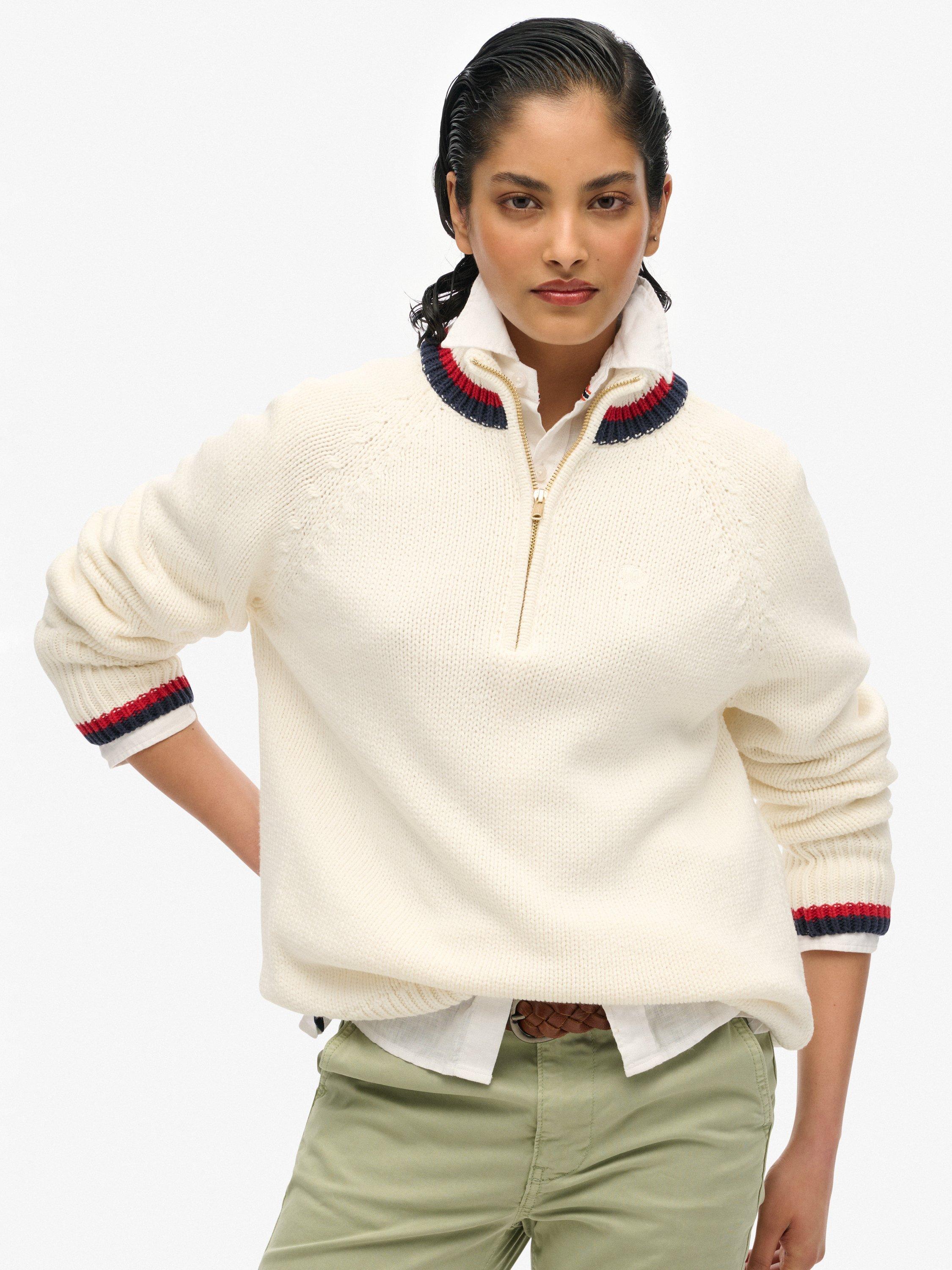 SuperdryTipped 1/2 Zip Jumper, Ecru